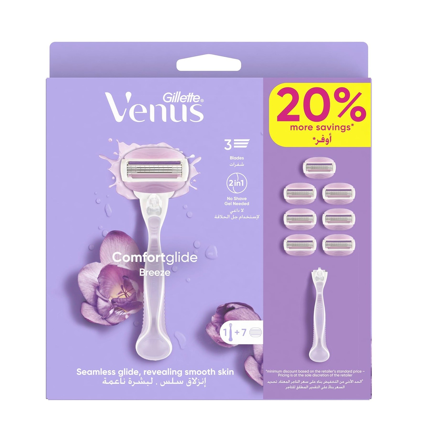 GILLETTE Comfort Glide Breeze Razor Handle مجموعة شفرات جيليت 7+1