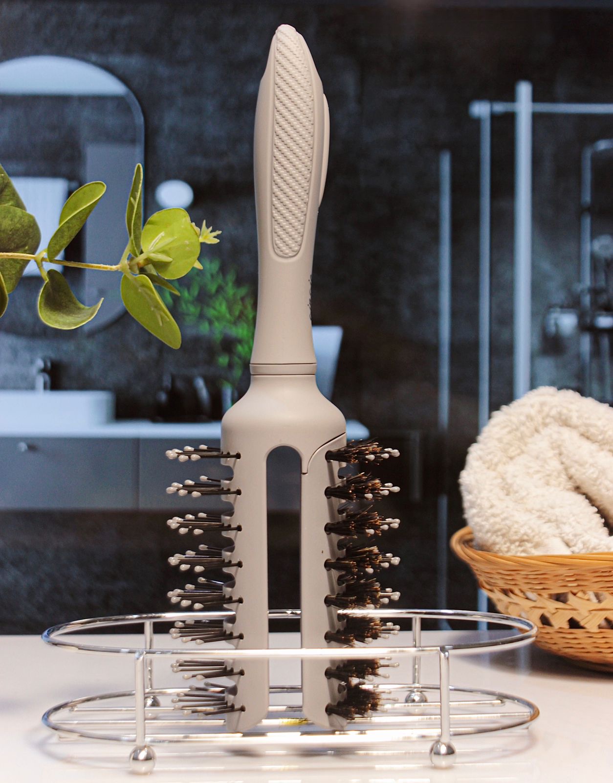 فرشاة شعر بفتحات تهوية، مصممة لفك تشابك الشعر وتصفيفه، وخاصةً لإضافة كثافة ورفع للشعر.