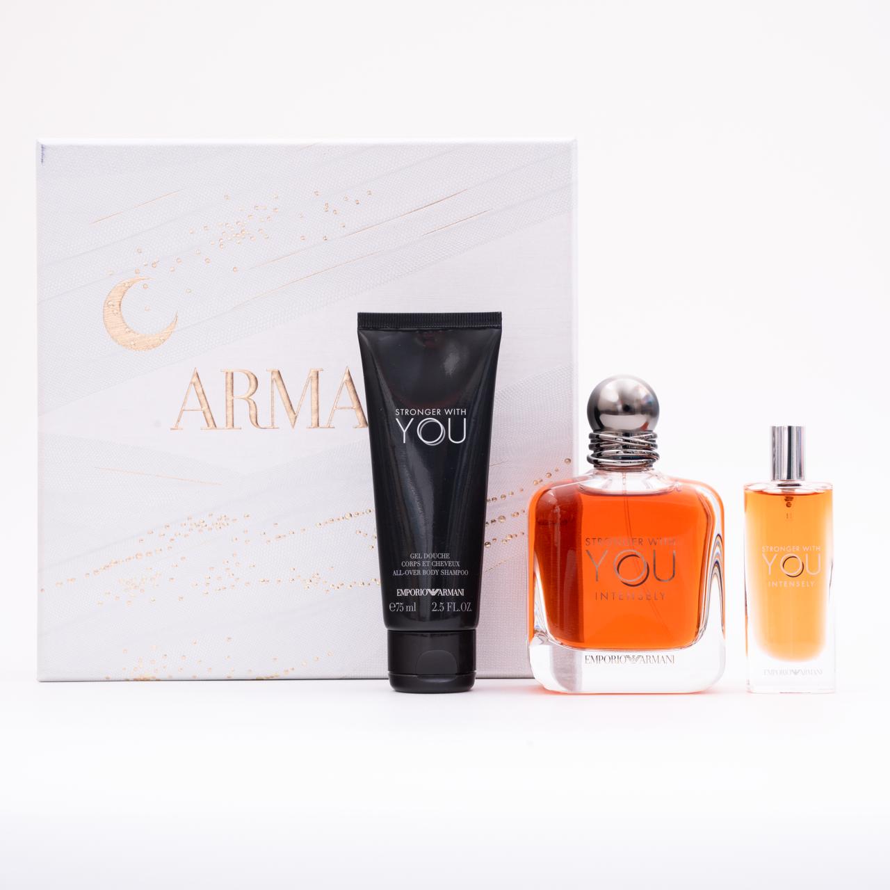مجموعة هدايا عطر سترونجر ويذ يو إنتنسلي (Stronger With You Intensely) الرجالي من جورجيو أرماني يتميز هذا العطر الرجالي بتركيبة شرقية خشبية فوّاحة تعكس شخصية قوية وجذابة.
