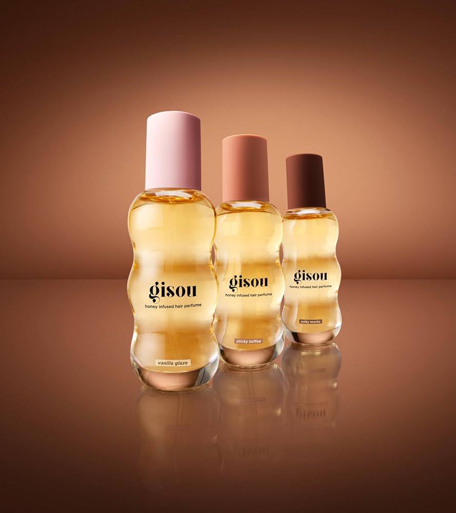 مجموعة Glazed Scents Trio من Gisou إصداراً خاصاً ومحدوداً يضم ثلاثة أنواع من عطور الشعر الفاخرة المستوحاة من نكهات الخريف والحلويات تتميز هذه المجموعة بتركيبتها الغنية بعسل ميرصالحي (Mirsalehi Honey) وزيت الأرغان، مما يمنح الشعر لمعاناً فورياً وترطيباً دون تركه دهنياً