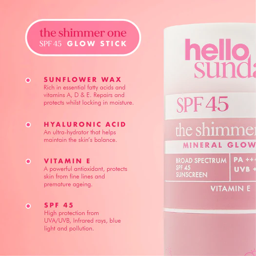 HELLO SUNDAY The Shimmer One Mineral Glow Stick SPF 45 واقي شمس من هيلو سنداي