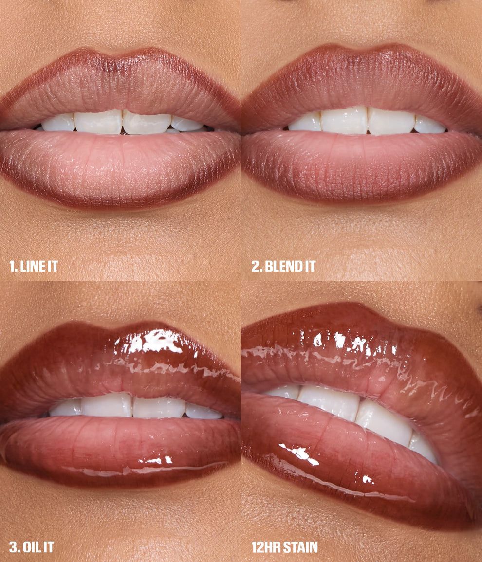 صبغة ومحدد الشفاه (Lip Contour Stain) بلون Soft Nude تجمع بين محدد وصبغة شفاه يتميز بتركيبة غنية بزيت الأرغان، توفر لمسة مطفية (Matte) طبيعية وهي مقاومة للمسح والقبلات وتدوم حتى 12 ساعة.