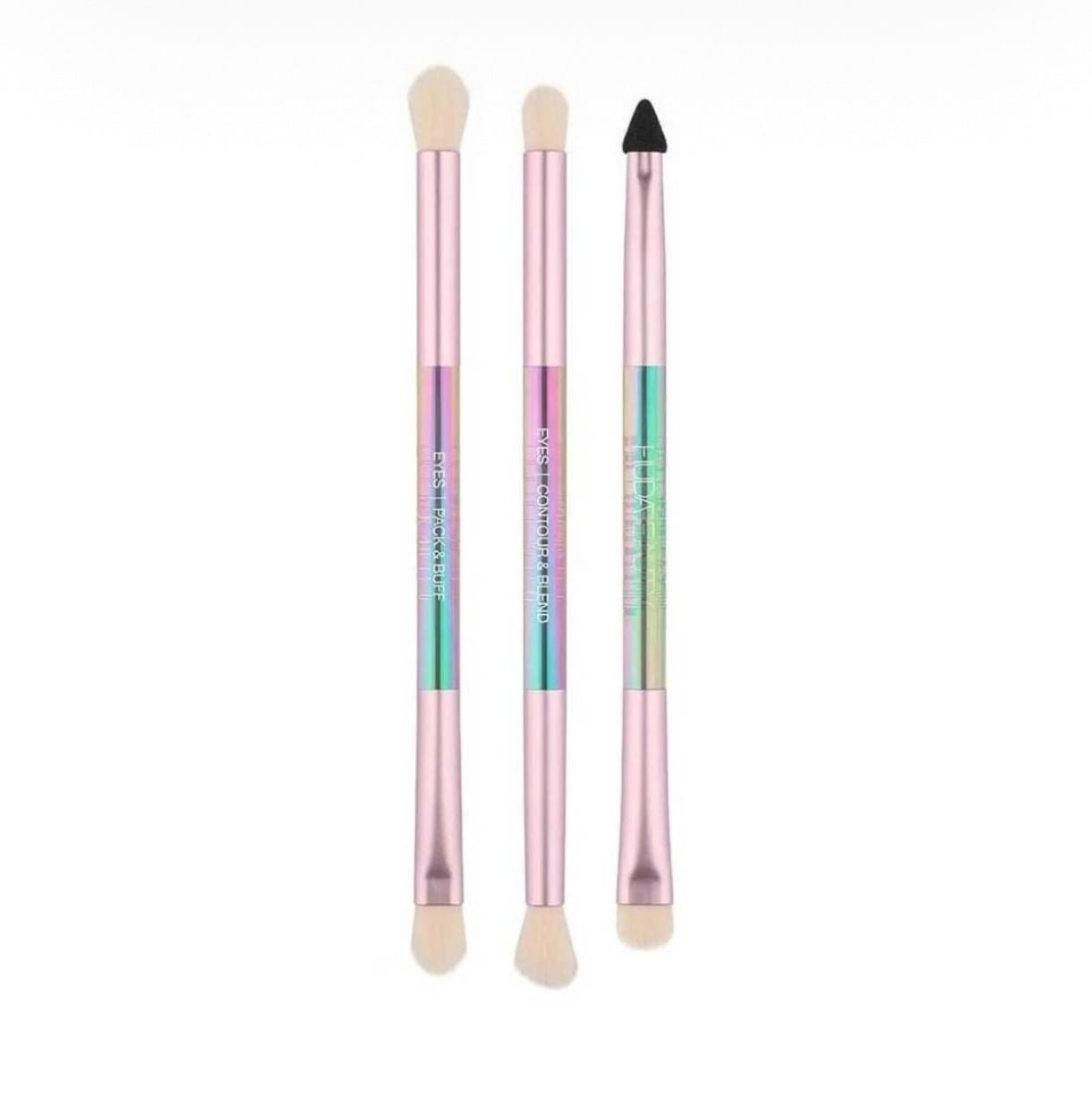 حقيبة مجسمة محدودة الإصدار مليئة بثلاث فراشي لظلال العيون مزدوجة الأطراف لإضفاء مظهر مثالي لعينيك.