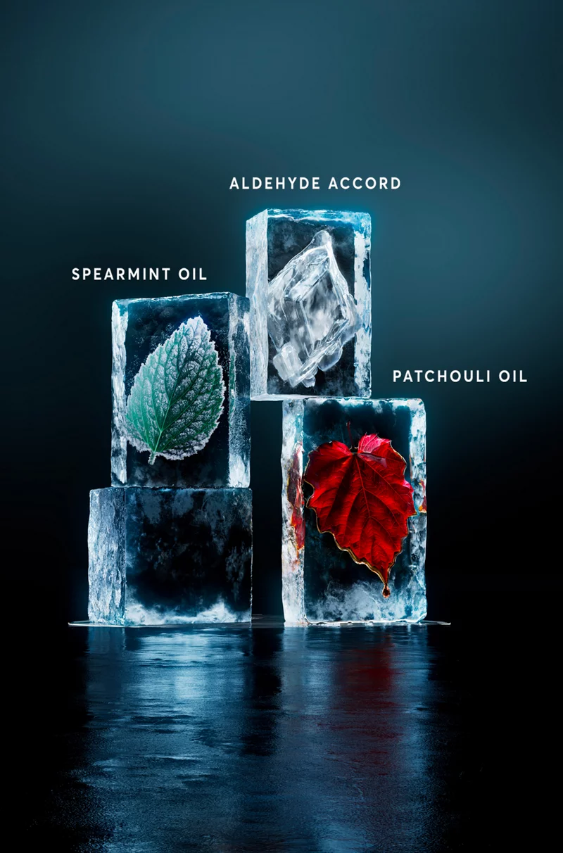 عطر بنفحاتٍ منعشةٍ من الألدهيدات المُجمدة والحمضيات والتوت العصير. يُكشف قلب العطر عن نعناعٍ مُنعش، بينما تُثري قاعدته بنفحاتٍ ترابيةٍ غنيةٍ من الباتشولي.
