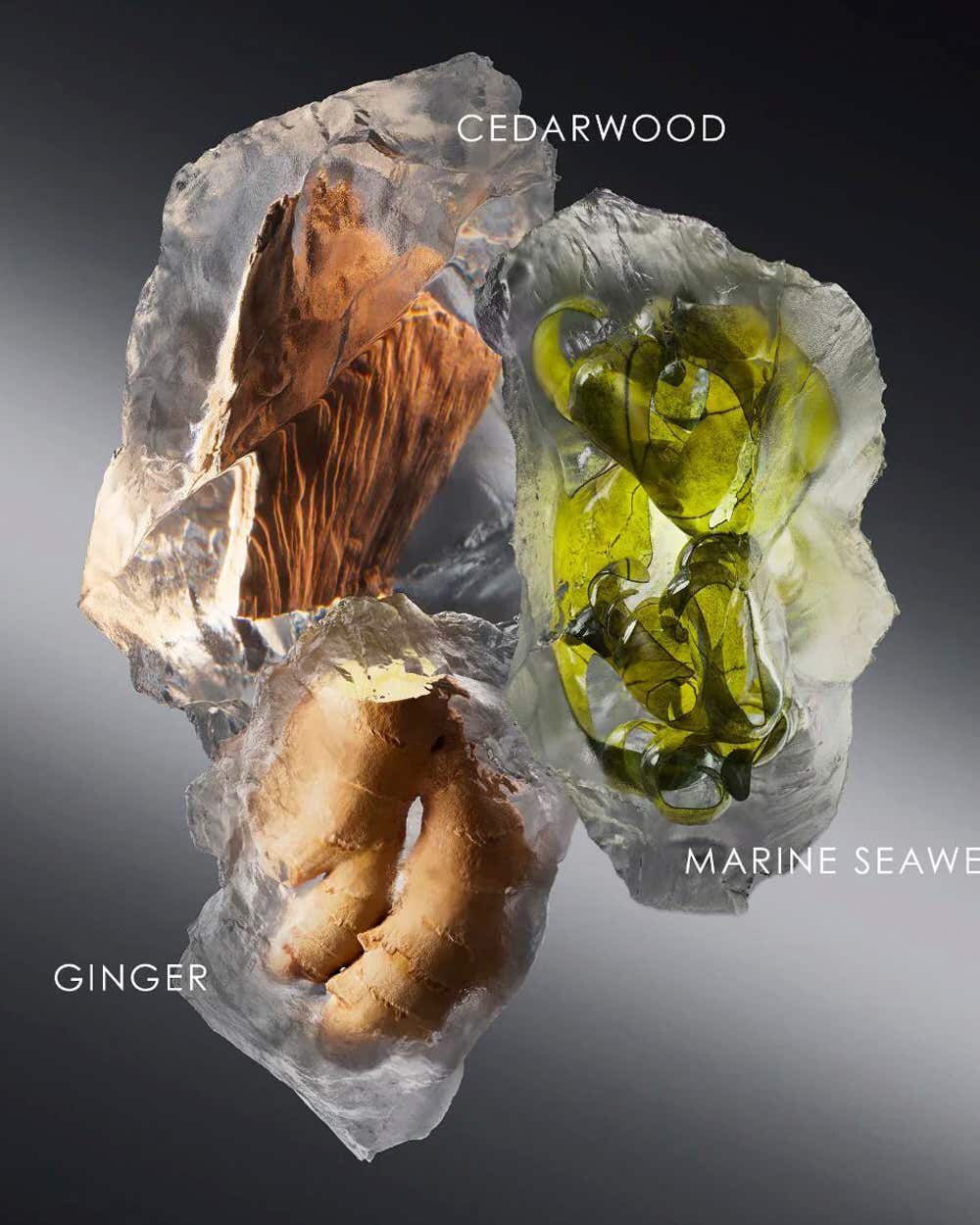 عطر للرجال بنفحات من الملح البحري ، الزنجبيل ، نجيل الهند ، بالاضافة الى طحلب البلوط.