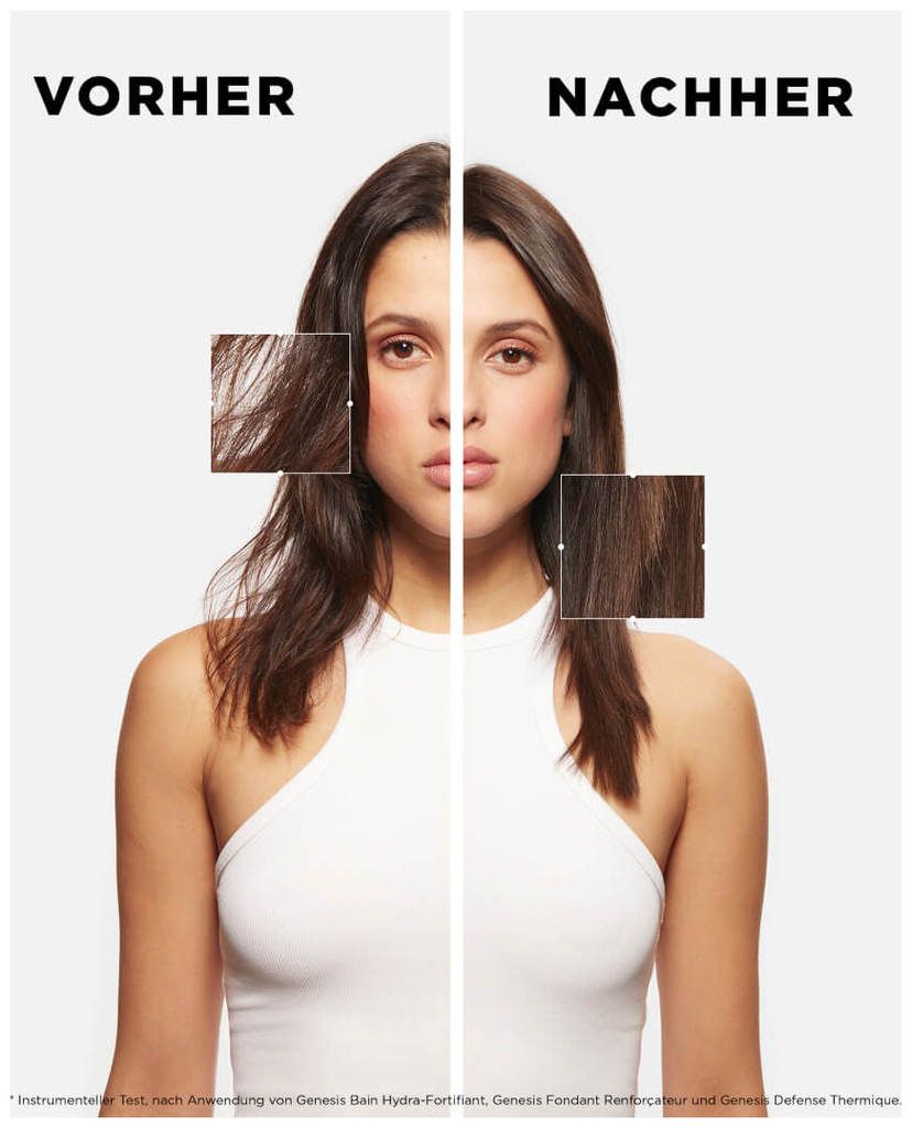 علاج كيراستاس جينيسيس ديفنس ثيرميك هو علاج وقائي ومغذٍّ ومُصفف للشعر الضعيف المُعرض للتساقط نتيجة التكسر. يوفر قوامه الحليبي حمايةً تدوم 24 ساعة ضد التكسر والتجعد حتى في ظروف الرطوبة العالية. يُعدّ شامبو كيراستاس جينيسيس ديفنس ثيرميك غنيًا بمزيج من خلايا زهرة إديلويس الأصلية وجذر الزنجبيل، مما يوفر ترطيبًا وتقوية وحماية للشعر من الحرارة حتى 430 درجة فهرنهايت، مع تقليل خطر تساقط الشعر الناتج عن التقصف. يصبح الشعر لامعًا وناعمًا كالحرير، وأكثر سهولة في التصفيف مع تشابك أقل، مما يجعل تمشيطه أسهل بكثير ويقلل من احتمالية تقصفه.