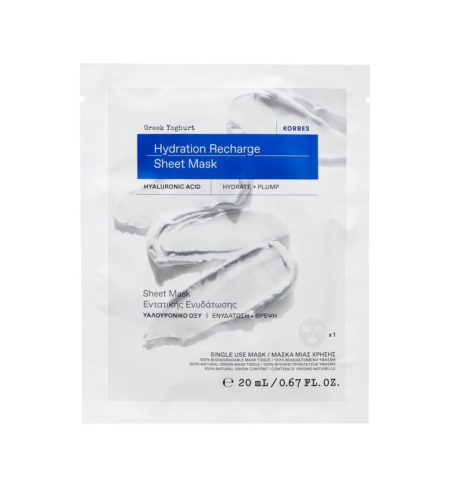 KORRES Greek Yoghurt Hydration Recharge Sheet Mask (1pc) كوريس قناع مرطب بعمق ومنعش يمنح اشراقة للبشرة بخلاصة الزبادي اليوناني