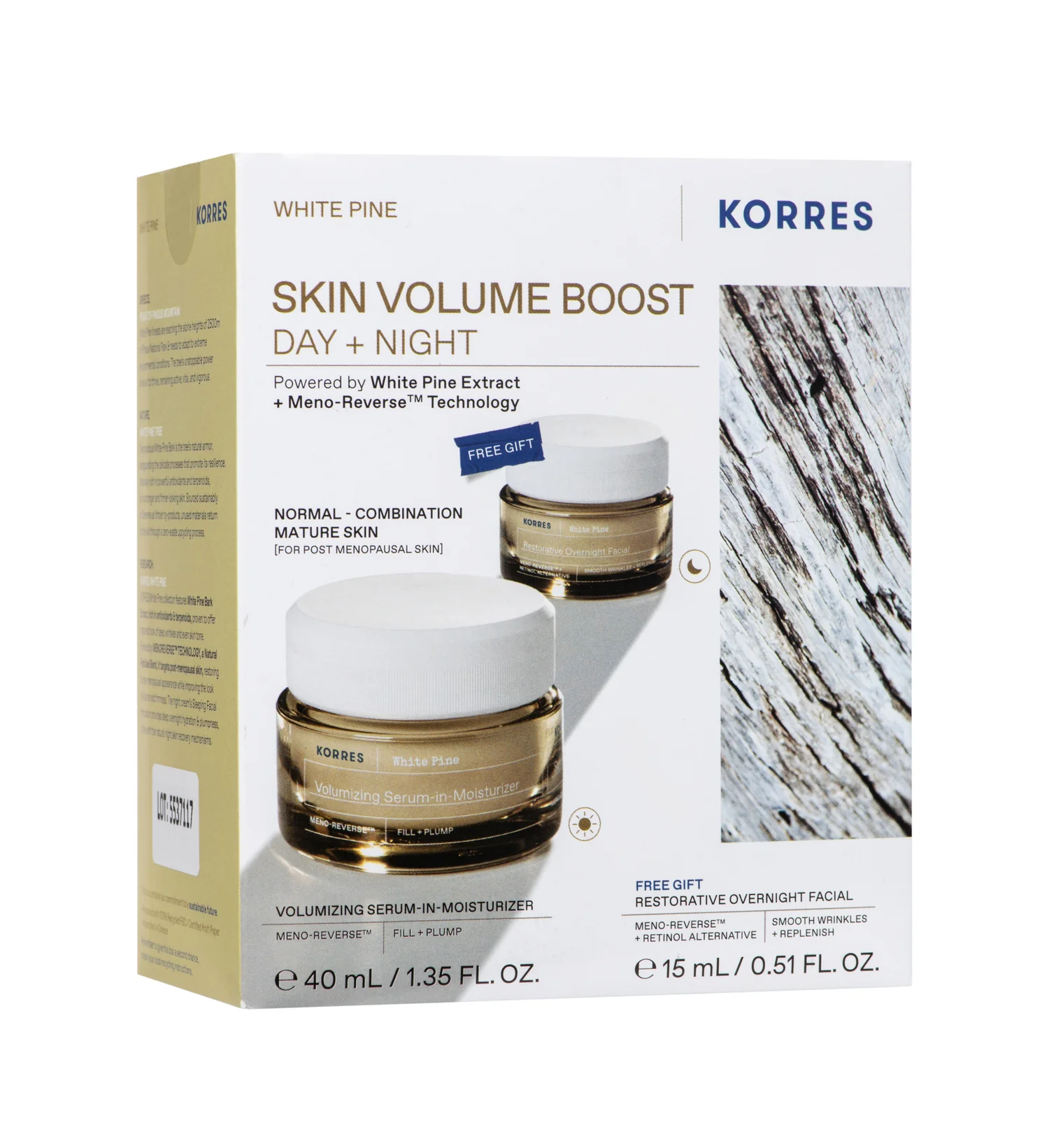 KORRES White Pine Skin Volume Boost Skincare Set for Normal to Combination Mature Skin (Moisturizer 40ml + Sleeping Facial 15ml) كوريس مجموعة العناية بالبشرة بخلاصة الصنوبر الابيض مناسبة للبشرة العادية إلى المختلطة