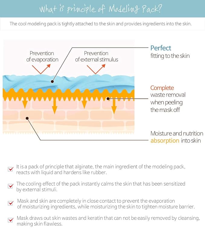 يستخدم قناع ليندسي للنمذجة، أو قناع المطاط، قوة مستخلص الطحالب لإزالة خلايا الجلد الميتة/الشوائب، والطين اللذين يلتصقان بسطح البشرة بسلاسة، مما يُتيح لمكونات القناع التغلغل في طبقات الجلد. يُعدّ القناع البارد ممتازًا لتهدئة البشرة المتهيجة بفضل تأثيره المُبرّد، مع توفير ترطيب كافٍ وحبسه في الوقت نفسه. عند إزالته، يمتص خلايا الجلد الميتة والشوائب الموجودة في المسام، تاركًا البشرة صافية وشفافة. تُستخدم أقنعة المطاط غالبًا في علاجات العناية بالبشرة في المنتجعات الصحية في كوريا، وهي من الخيارات المفضلة لدى المشاهير الكوريين منذ فترة طويلة للحفاظ على بشرة مثالية. مع أقنعة ليندسي النموذجية، يمكنك تجربة نتائج العناية بالوجه الأنيقة في راحة منزلك دون أي متاعب.