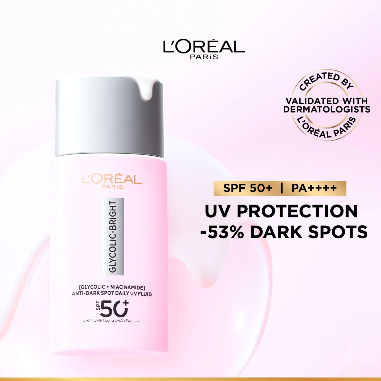 LOREAL PARIS Glycolic Bright Anti-Dark Spot Daily UV Fluid SPF 50+ سائل يومي مضاد للبقع الداكنة والاشعة فوق البنفسجية من لوريال