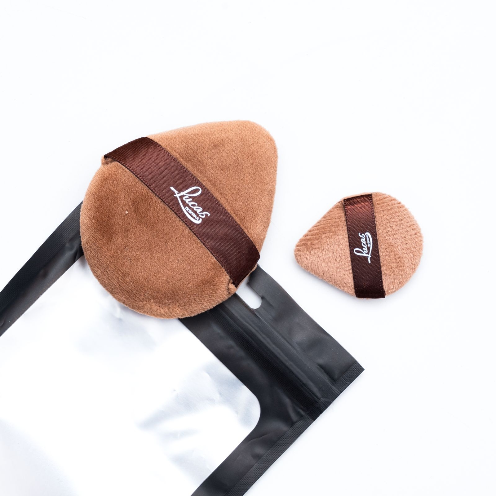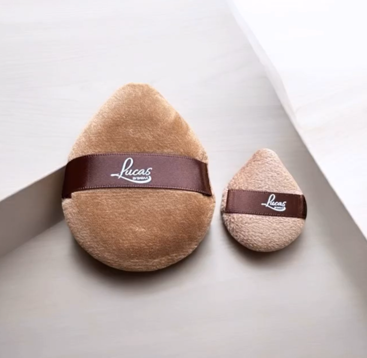 إسفنجة توزيع البودرة _ 2 قطعة من ماركة Lucas by Baraa، تتميز بقطعتين كبيرة لتوزيع البودرة على كامل الوجه وصغيرة للمناطق الدقيقة، بملمس ناعم لطيف.