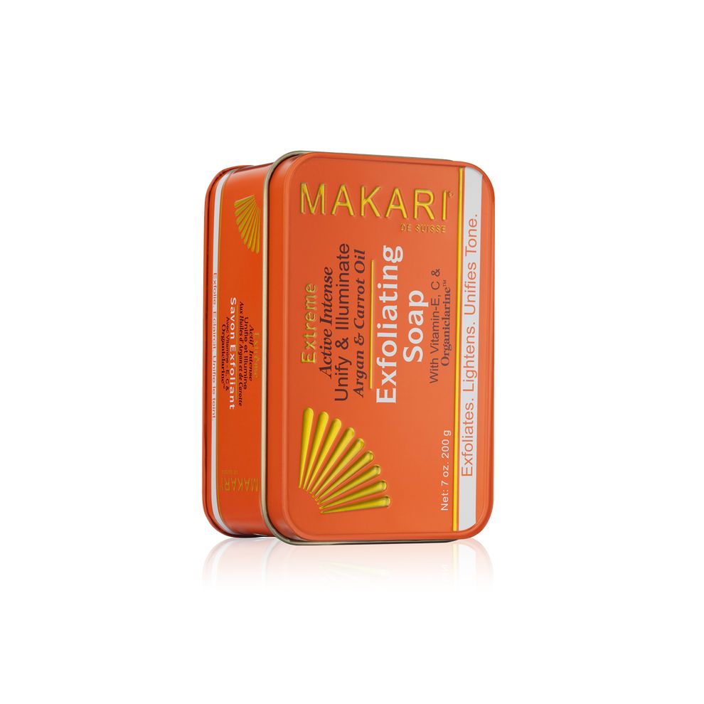MAKARI EXTREME ACTIVE INTENSE UNIFY & ILLUMINATE ARGAN & CARROT OIL EXFOLIATING SOAP 200g ماكاري صابونة لتفتيح وتوحيد لون الجسم والبشرة