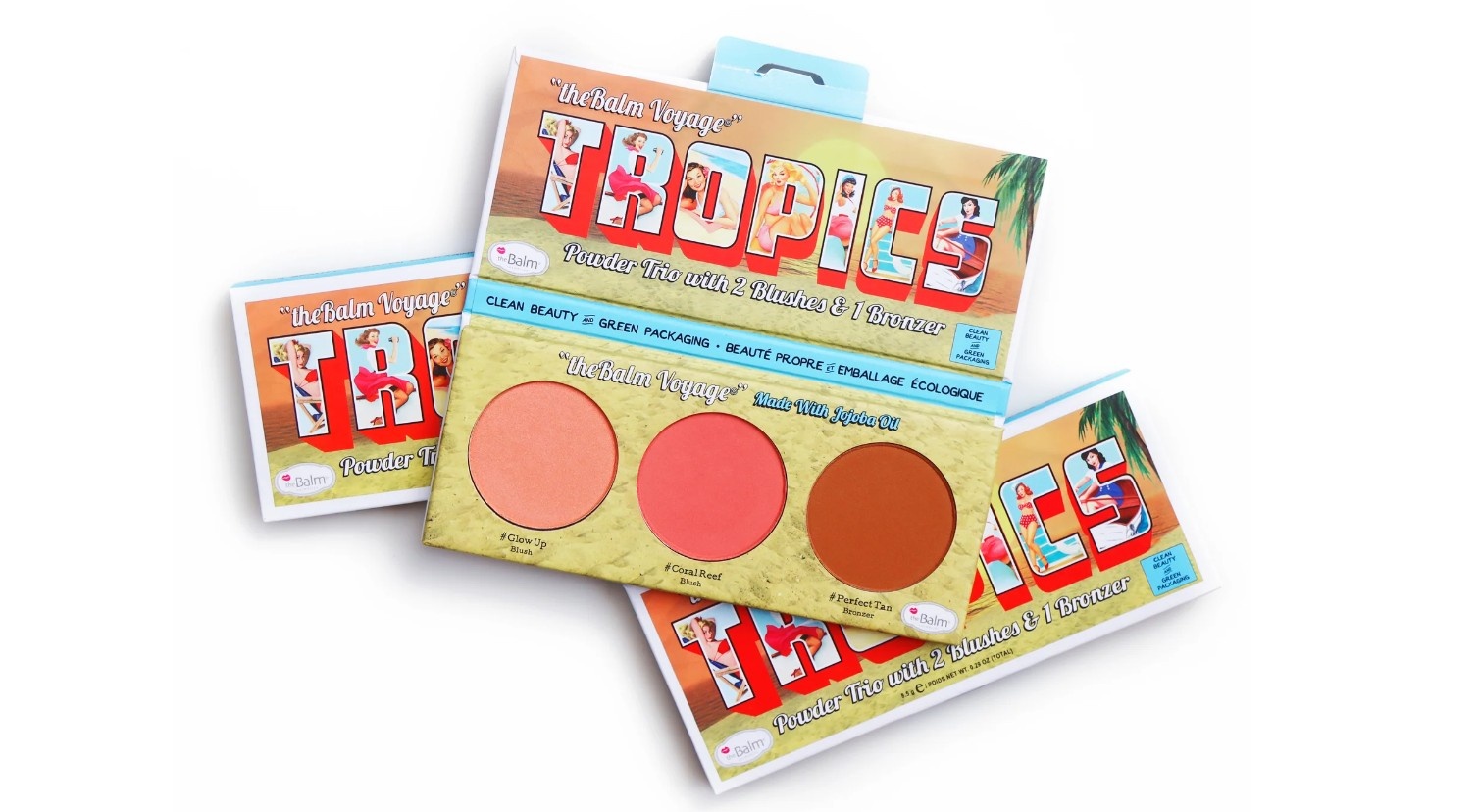 Tropics®، ثلاثي للوجه وخدود لتوهج طبيعي تغمره الشمس. مصنوع من زيت الجوجوبا، هذا الثلاثي سيحول البشرة الباهتة على الفور من خلال توفير لمعان وأبعاد سهلة.