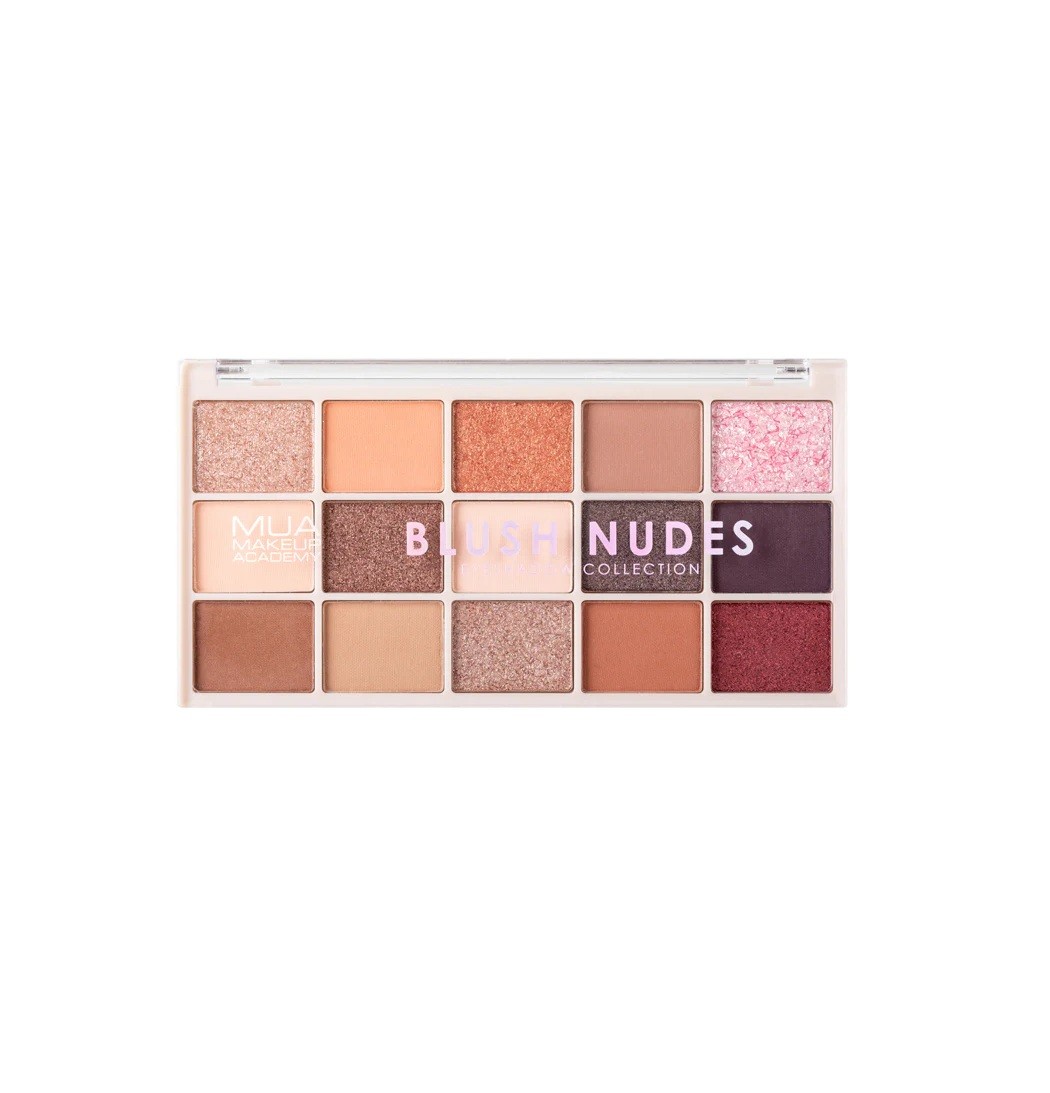 MUA MAKEUP ACADEMY 15 Shade Eyeshadow Palette – BLUSH NUDES لوحة ظلال العيون المكونة من 15 لونًا من موا