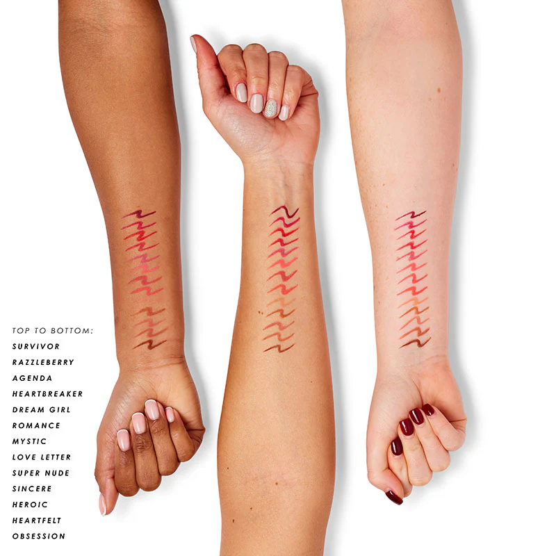 | colors | Heartbreaker, Sincere, Agenda, Dream Girl, Heartfelt, Heroic, Love Letter, Mystic, Obsession, Razzleberry, Romance, Super Nude, Survivor |