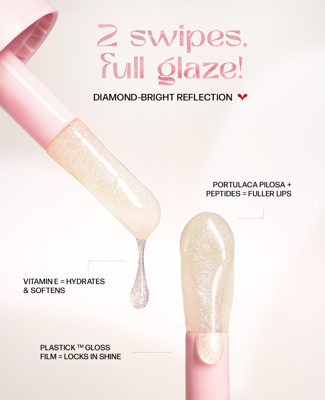 ملمع شفاه مثالي لترطيب الشفاه، ومنحها نضارةً ولمعانًا جذابًا، غني بجزيئات لؤلؤية عاكسة للضوء تلتقط الضوء وتوزعه لتمنحها توهجًا متعدد الأبعاد يشبه الزجاج.