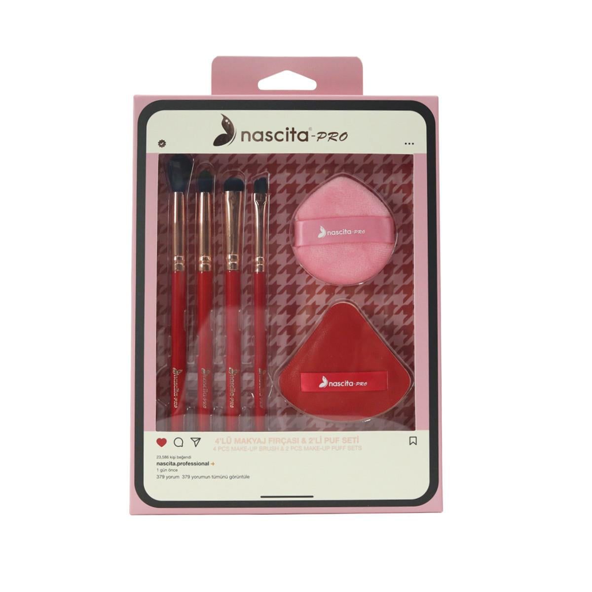 NASCITA PRO MAKE-UP BRUSH (4PCS) & PUFF (2PCS) SET ناسيتا مجموعة فرش واسفنجات المكياج