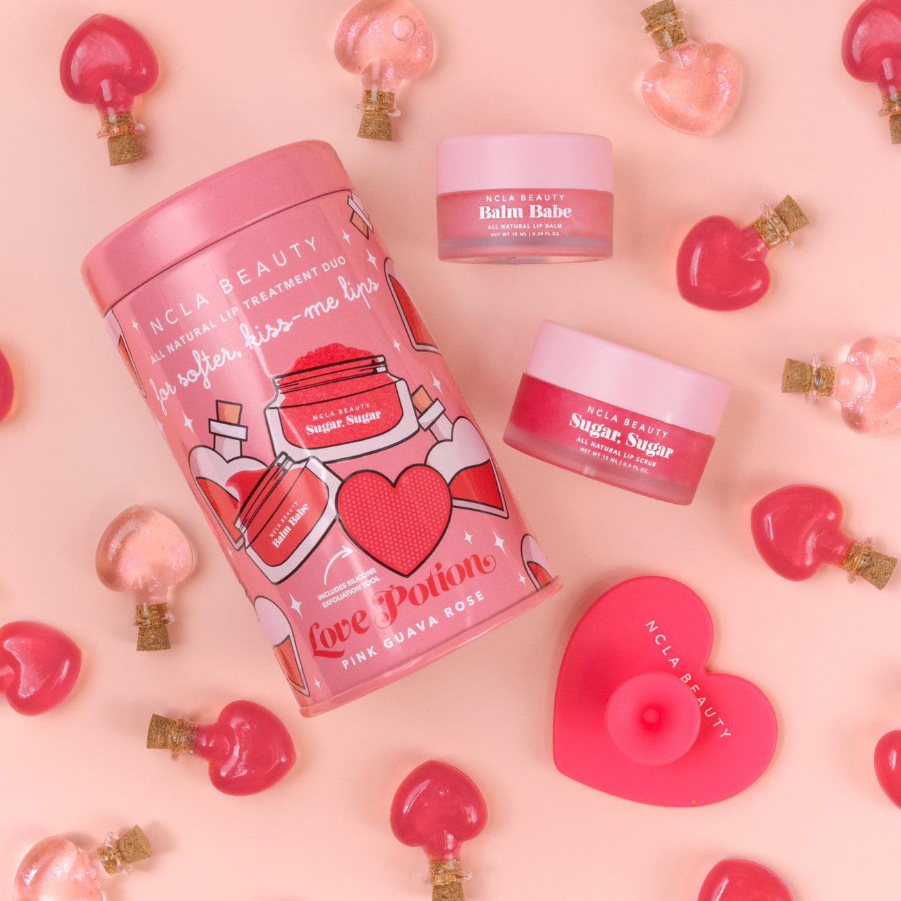 NCLA BEAUTY LOVE POTION LIP CARE SET + LIP SCRUBBER نگلا بيوتي مجموعة العناية بالشفاه