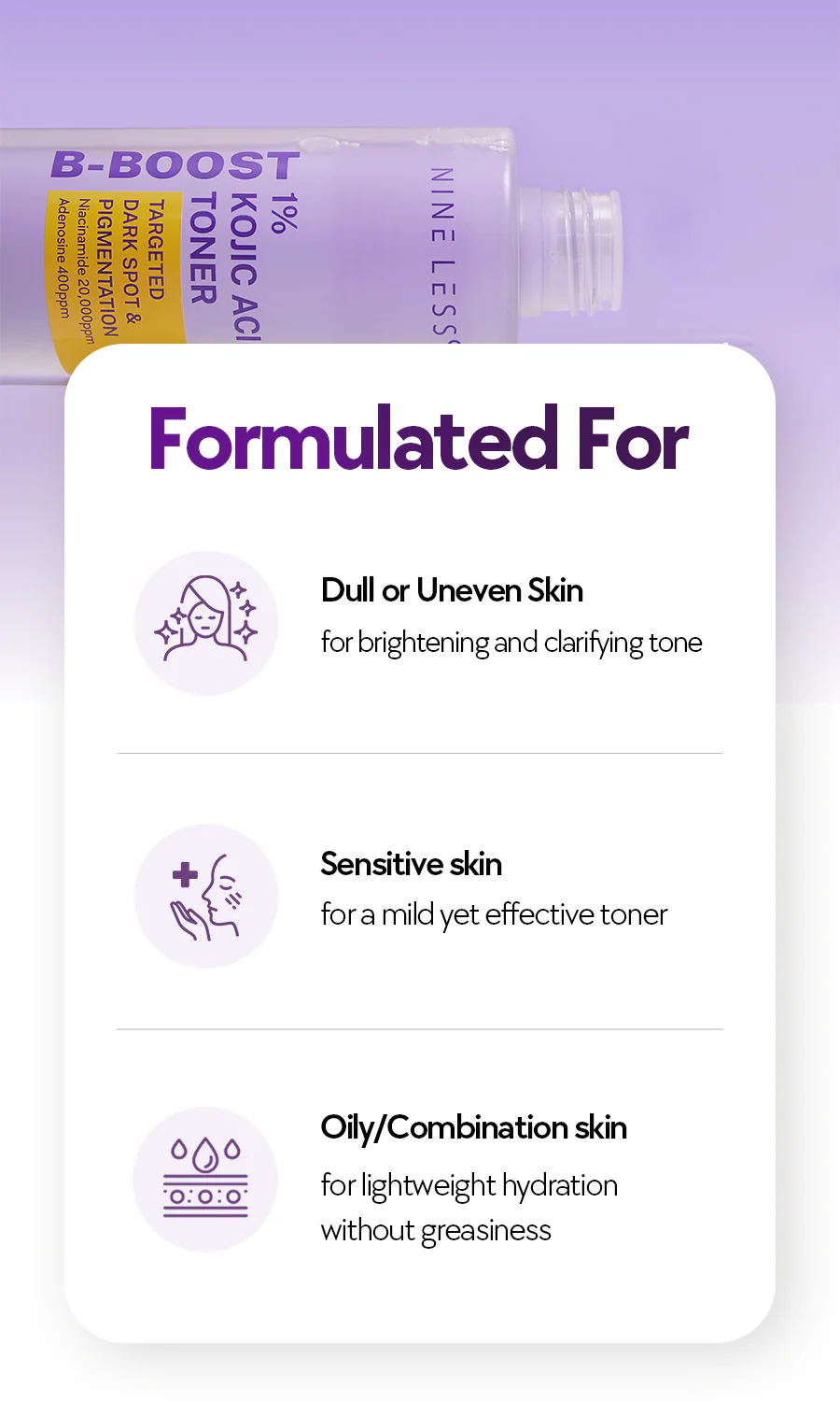 NINE LESS B-BOOST 1% Kojic Acid Toner 200ml تونر للبشرة من ناين ليس