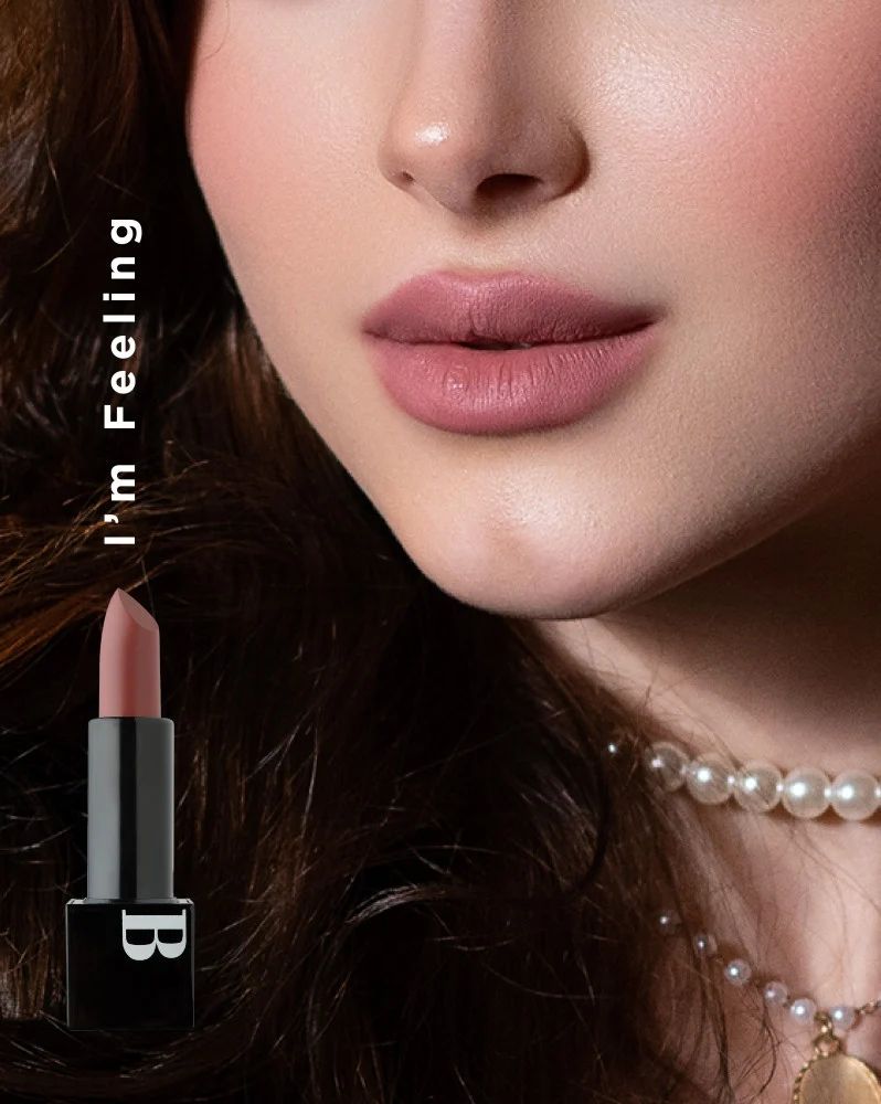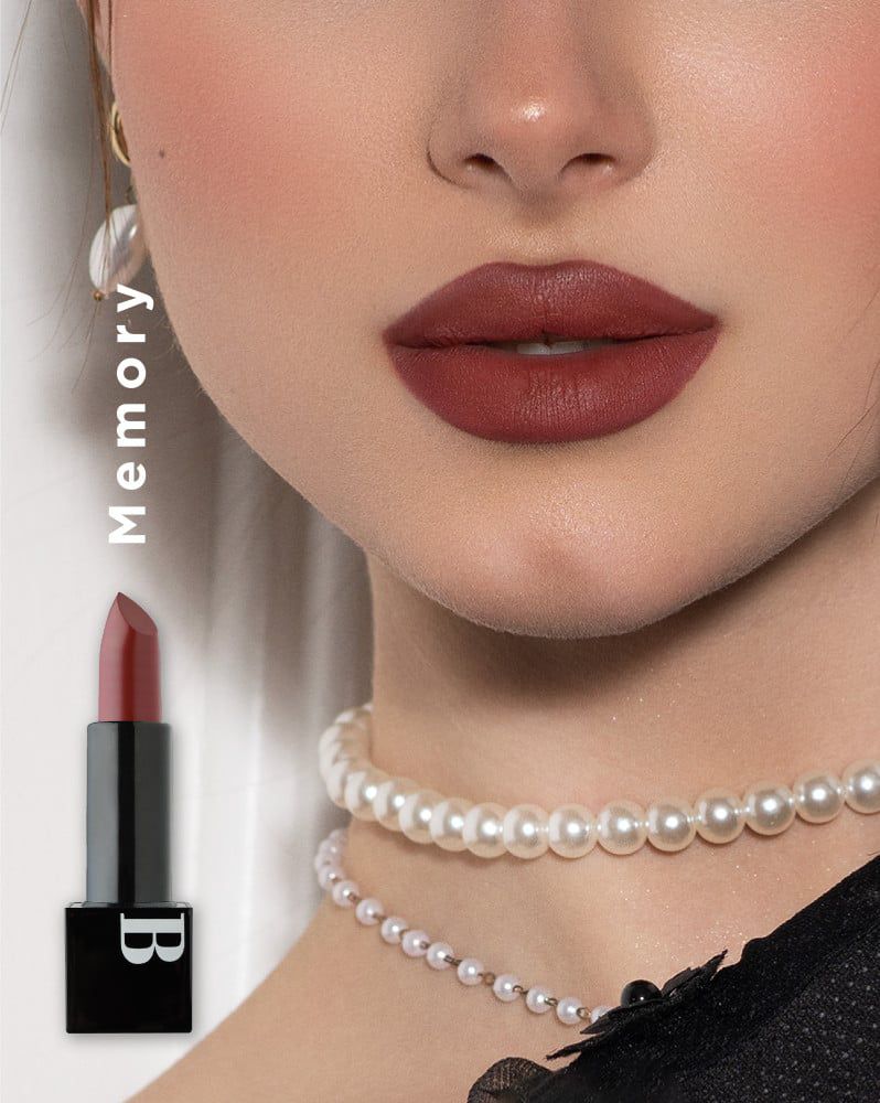 احمر شفاه من نورا بوعوض تتميز بقوام كريمي مخملي ومطفي ناعم على الشفاه
