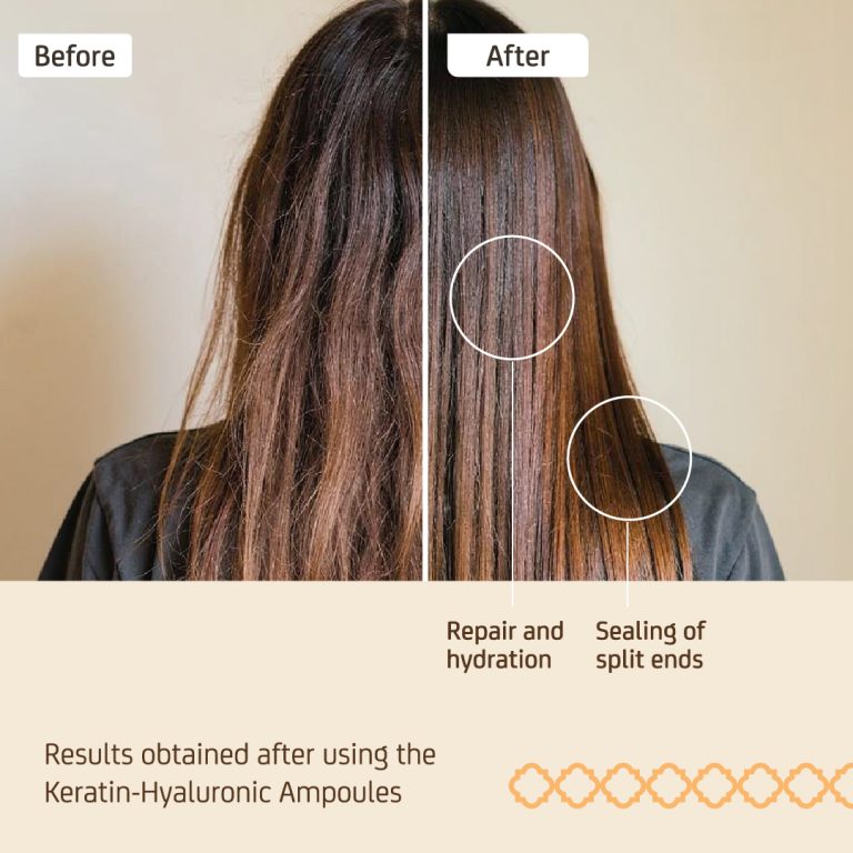 تحتوي على الكيراتين المُحلل، وحمض الهيالورونيك، وزيت الخروع، وهي مكونات فعّالة تُرطب ألياف الشعر وتُغلفها.