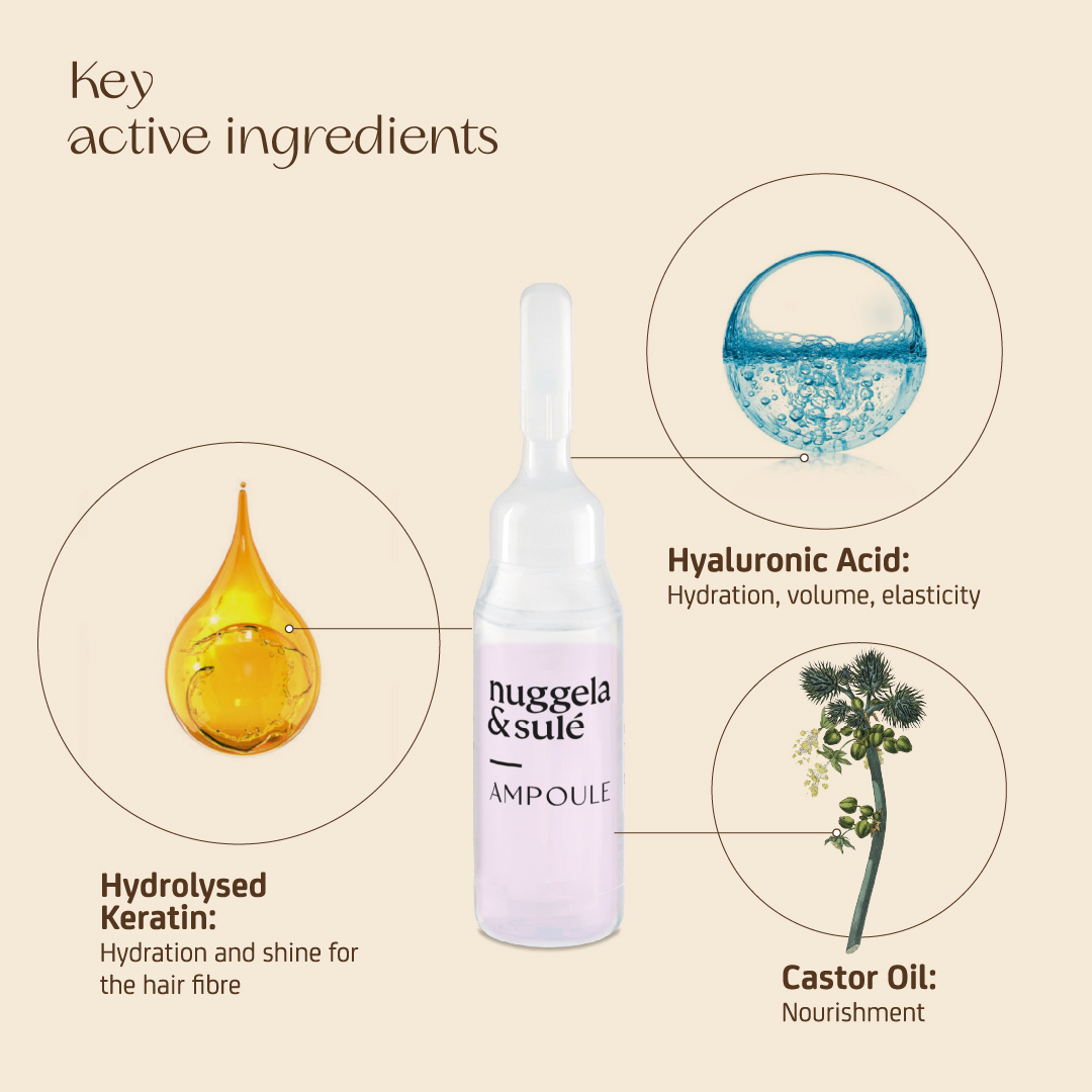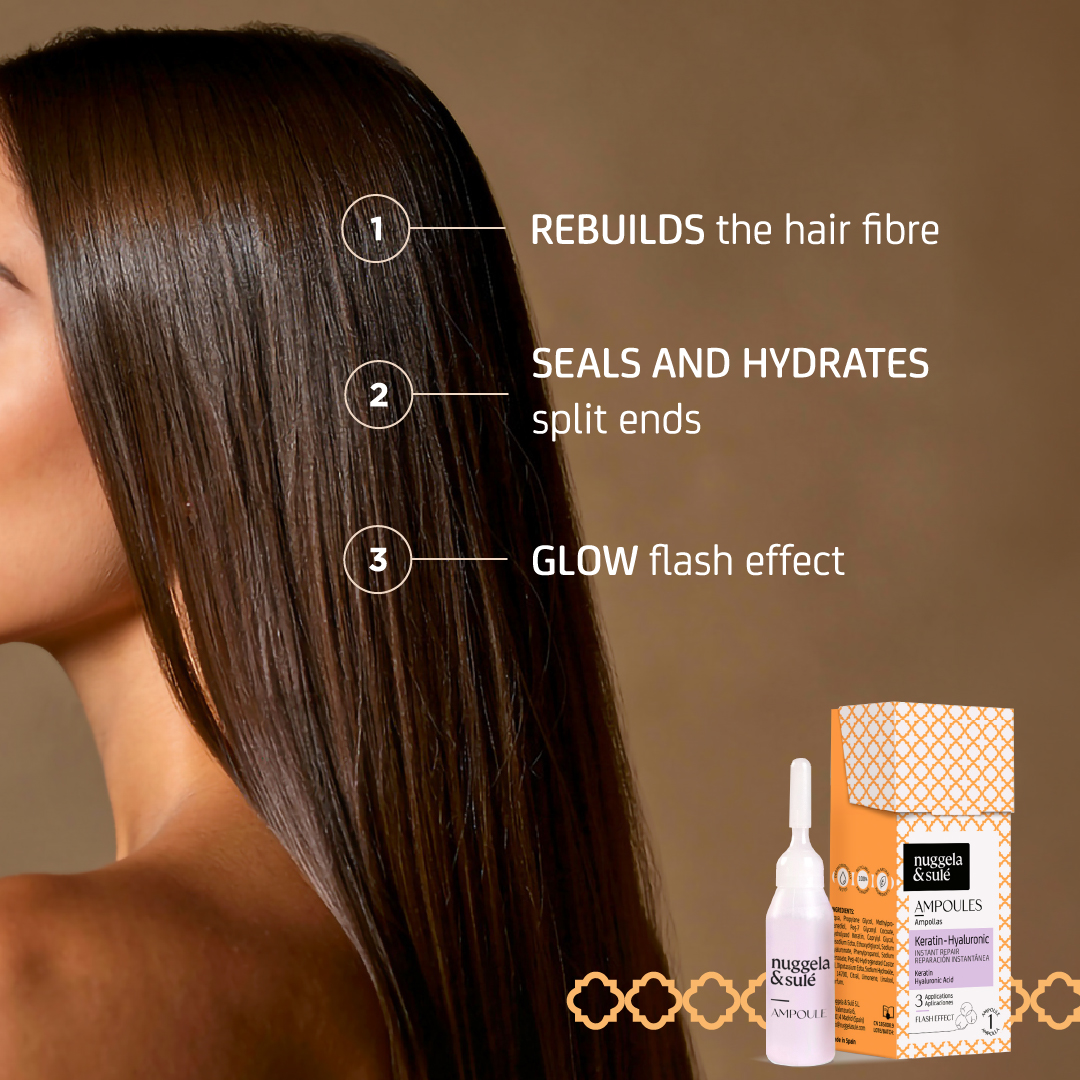 NUGGELA & SULE Keratin-Hyaluronic Ampoule 10ml نوكيلا امبول الكيراتين وحمض الهيالورونيك الفعال لإصلاح وترطيب وتقوية الشعر