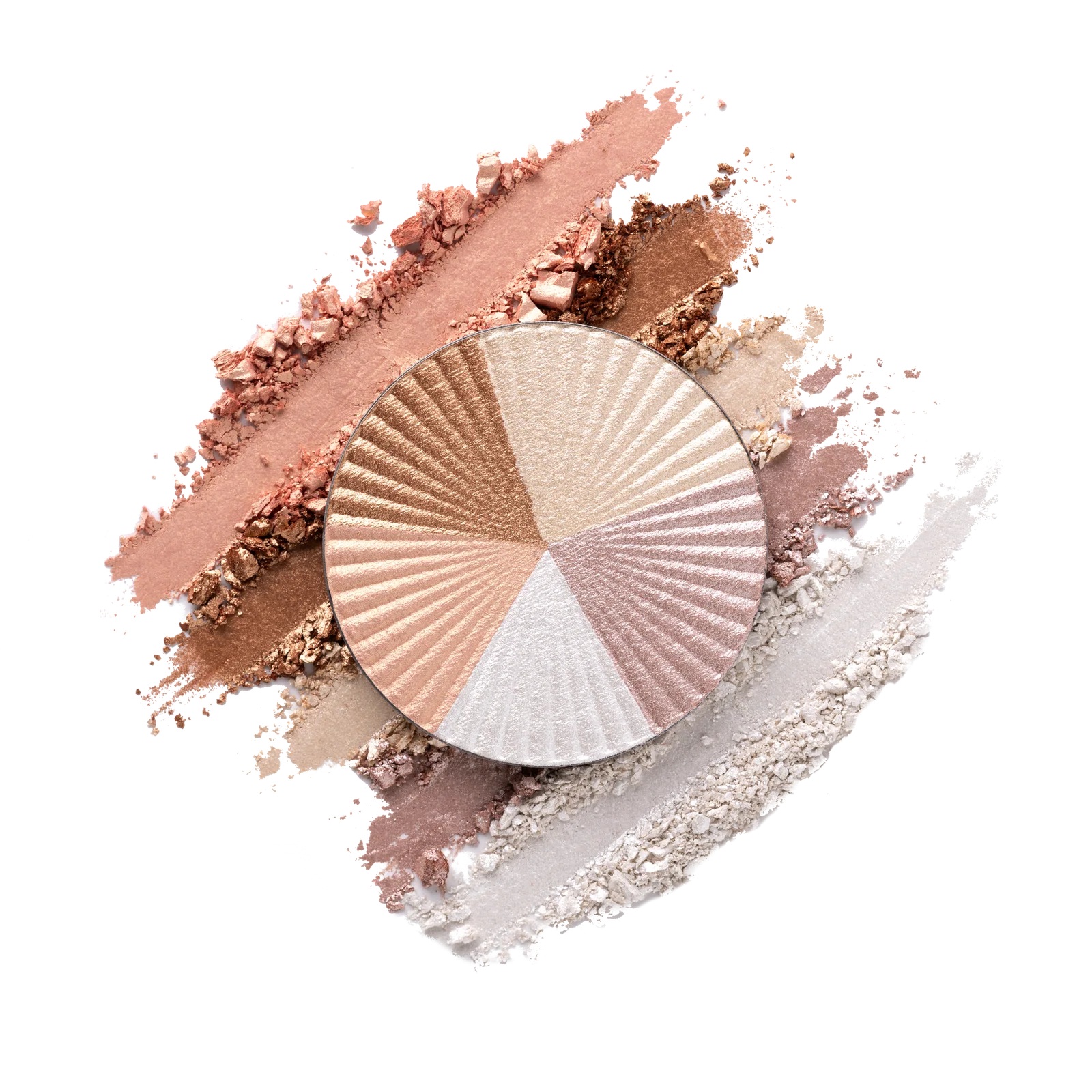 مزيج من خمسة ألوان تشمل golden bronze, cool pink, pearly white, neutral shimmer and pinky-peach