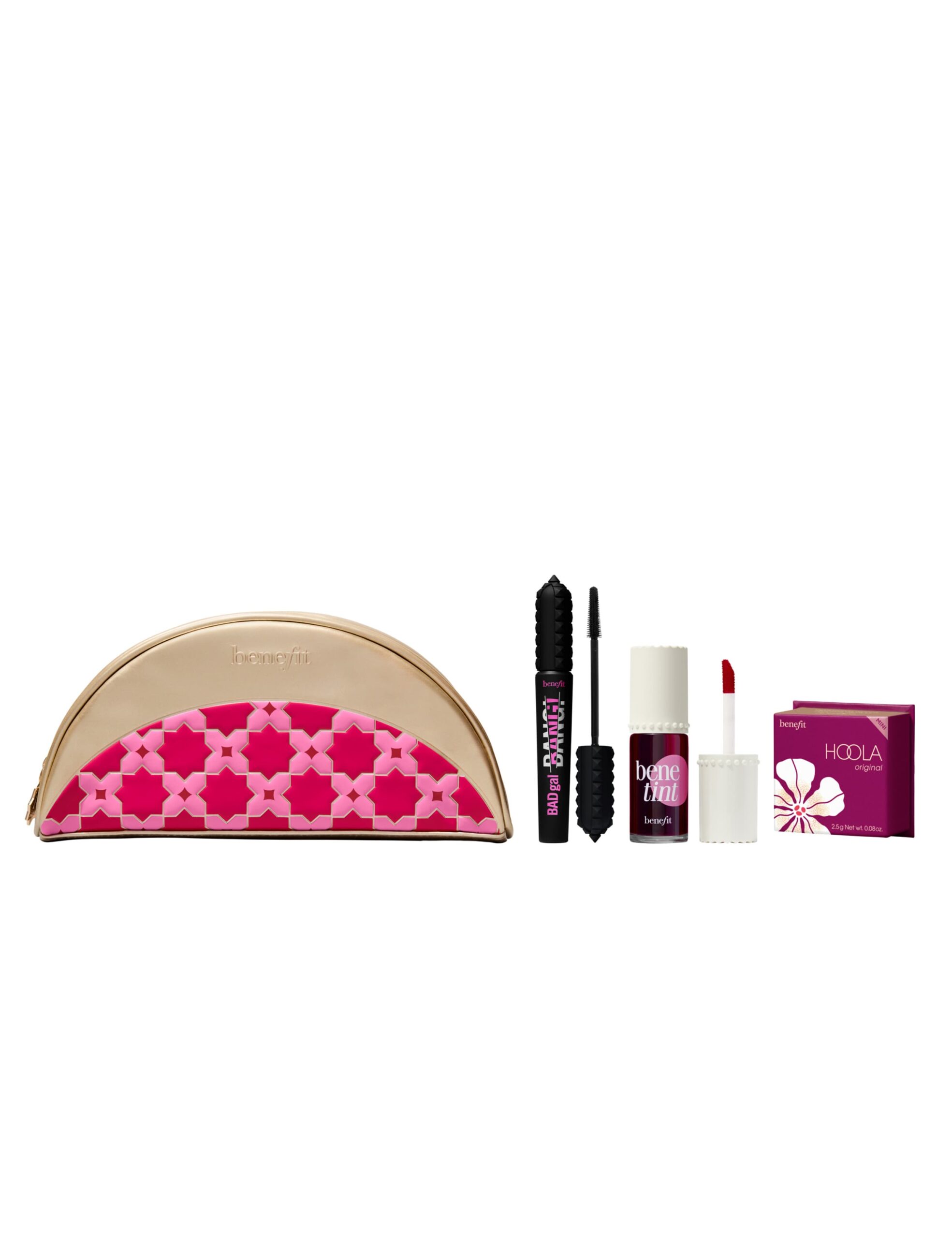 مجموعة هدايا “كان يا ما كان” الإصدار المحدود تجمع لكِ 3 من أكثر منتجاتنا مبيعًا: ماسكارا BADgal BANG! لرموش كثيفة وممتلئة، Benetint لتوريد الشفاه والخدود بلون وردي طبيعي، وبودرة Hoola البرونزية الشهيرة لإطلالة مطفية طبيعية، وكلها تأتي داخل حقيبة مكياج ساحرة على شكل هلال تجعلها الهدية المثالية لعاشقات الجمال.
