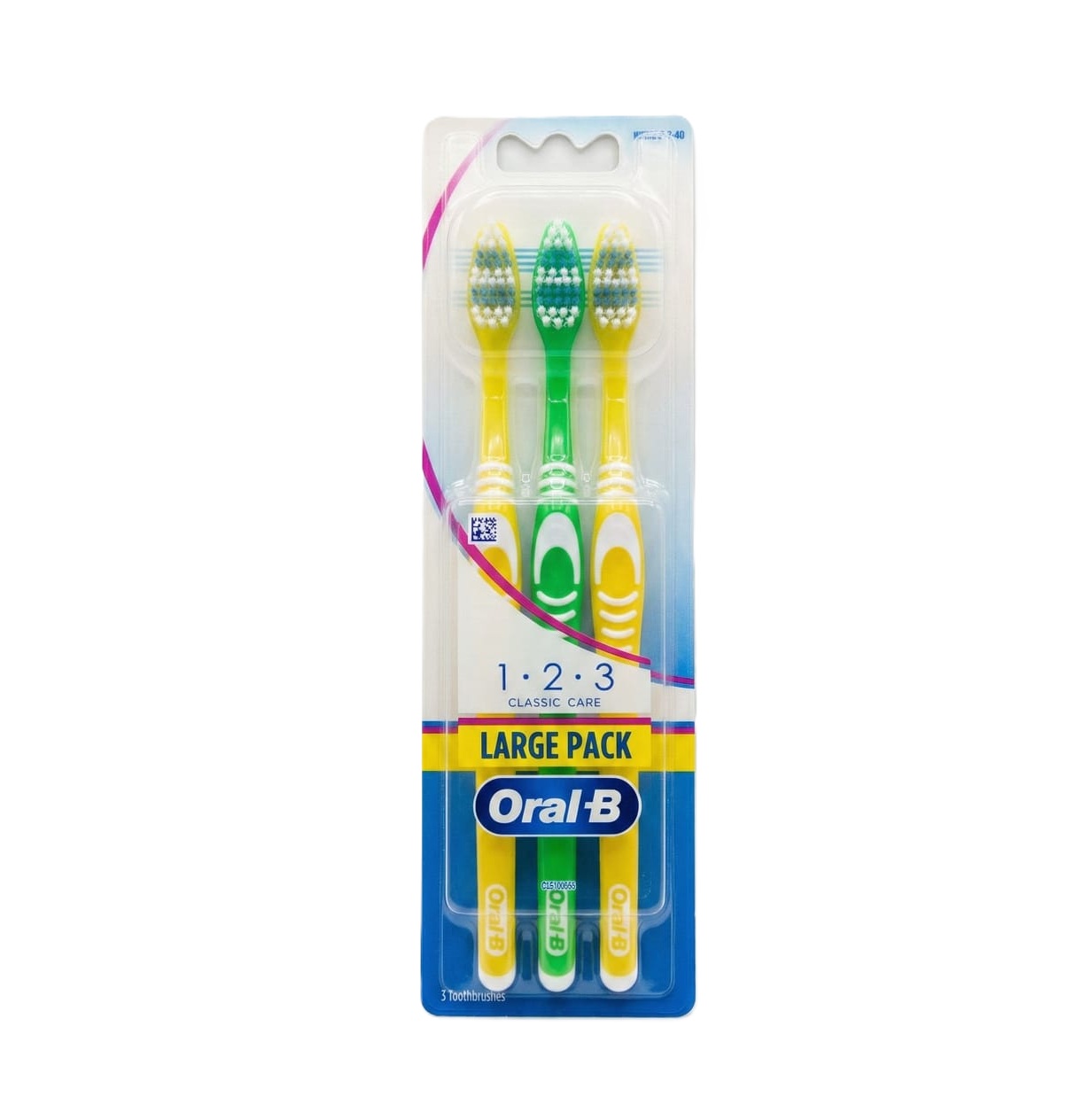ORAL-B 1.2.3 Classic Care Large Pack Toothbrush 3pcs فرشاة منظفة للاسنان من اورال بي