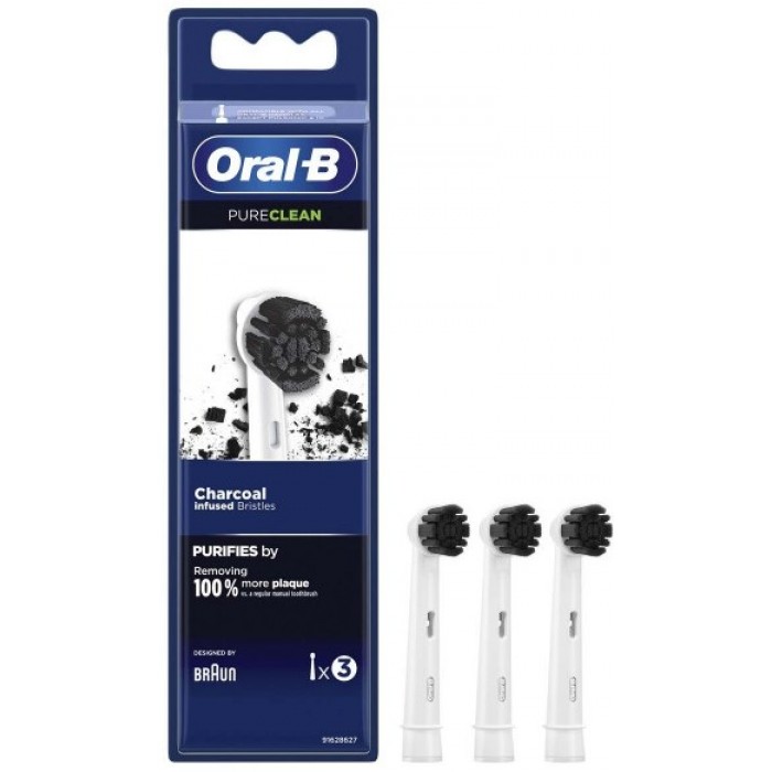 ابتسامة أنصع بياضًا مع رؤوس فرشاة ORAL B (1X3) بيور كلين بالفحم.