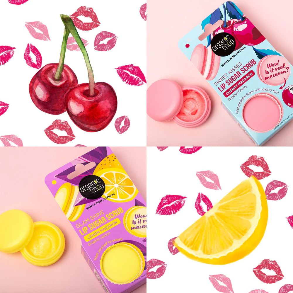 ORGANIC SHOP Glam Shine Lemon Macaron Lip Sugar Scrub اوركانك شوب مقشر الشفاه بالسكر بنكهة الليمون والماكرون