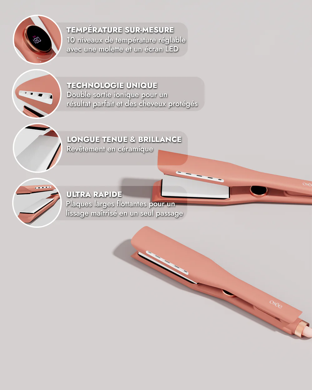 تتكيف الصفائح العريضة العائمة مع كثافة الشعر لتمنحك نتيجة متقنة بتمريرة واحدة (تمليس أسرع بـ 3 مرات).