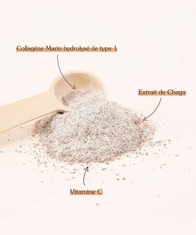مكملنا الغذائي المسحوق، بنكهة الفانيليا الطبيعية، غني بأفضل أنواع الكولاجين البحري من النوع الأول، والمستخلص من قشور كولين الطازجة التي يتم الحصول عليها بمسؤولية، وفطر شاجا الملقب بـ”فطر الخلود”، وفيتامين سي. يساهم هذا المنتج في تكوين الكولاجين لضمان الأداء الطبيعي للبشرة والمفاصل والعظام، ويساعد في مكافحة علامات الشيخوخة.