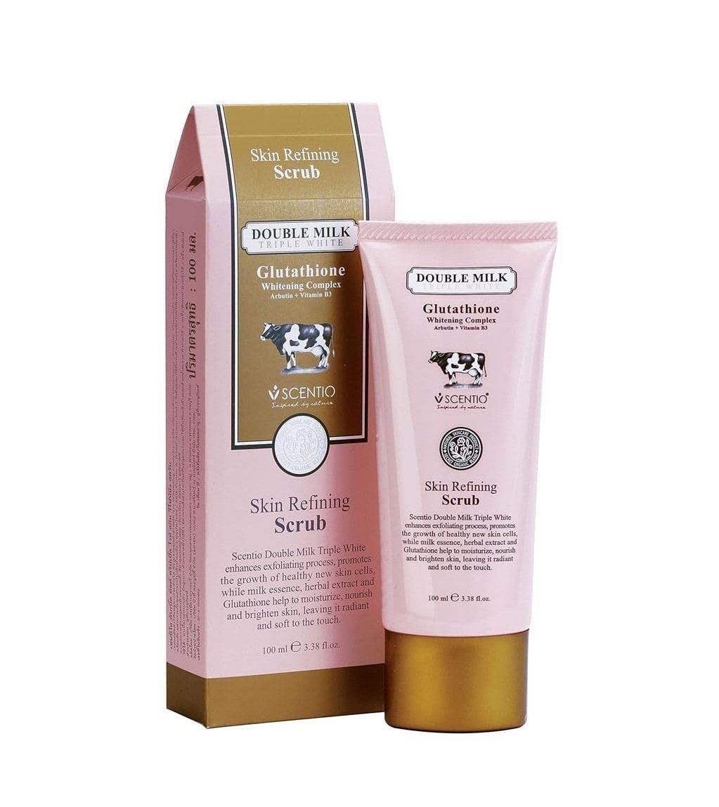 SCENTIO DOUBLE MILK TRIPLE SKIN REFINING SCRUB 100ml سينتيو مقشر دبل ميلك الثلاثي لتفتيح وتحسين ملمس البشرة