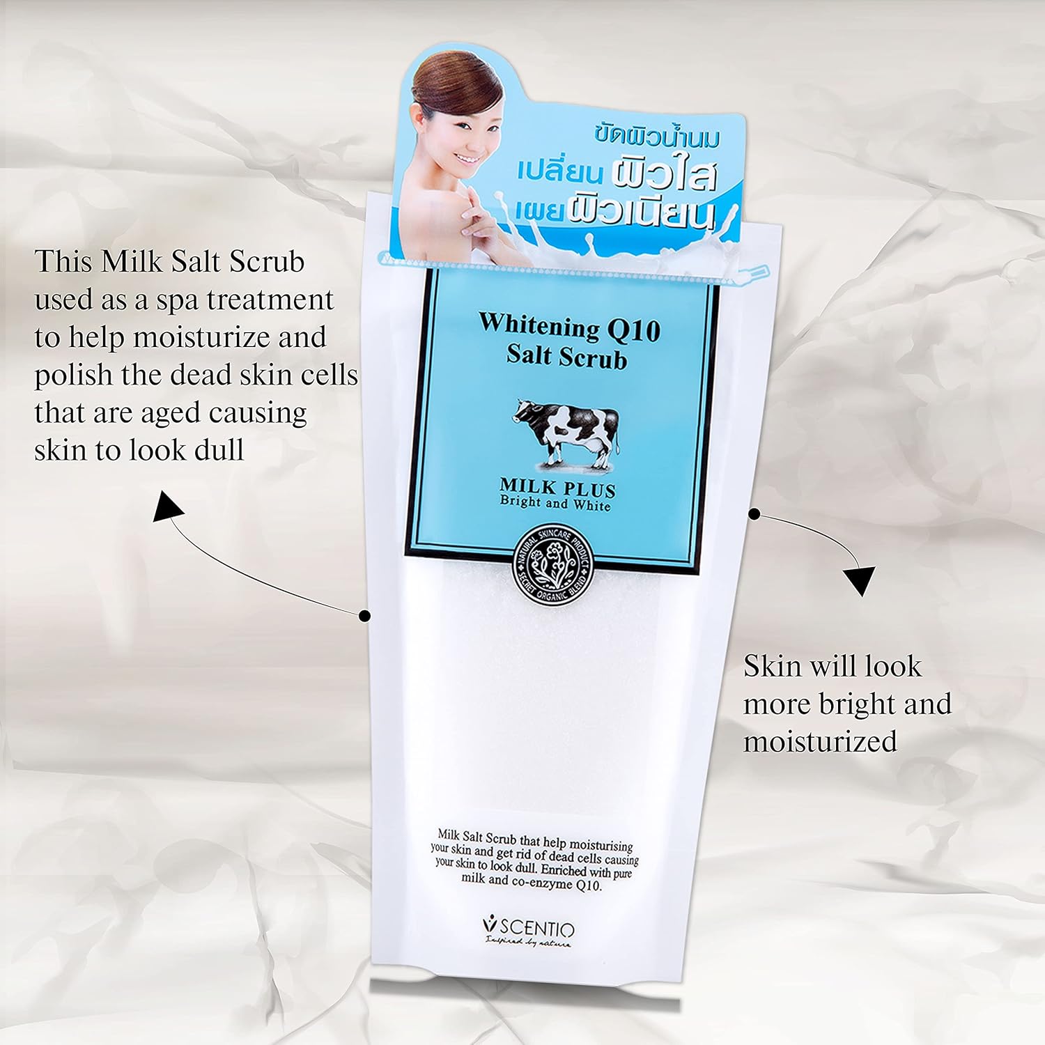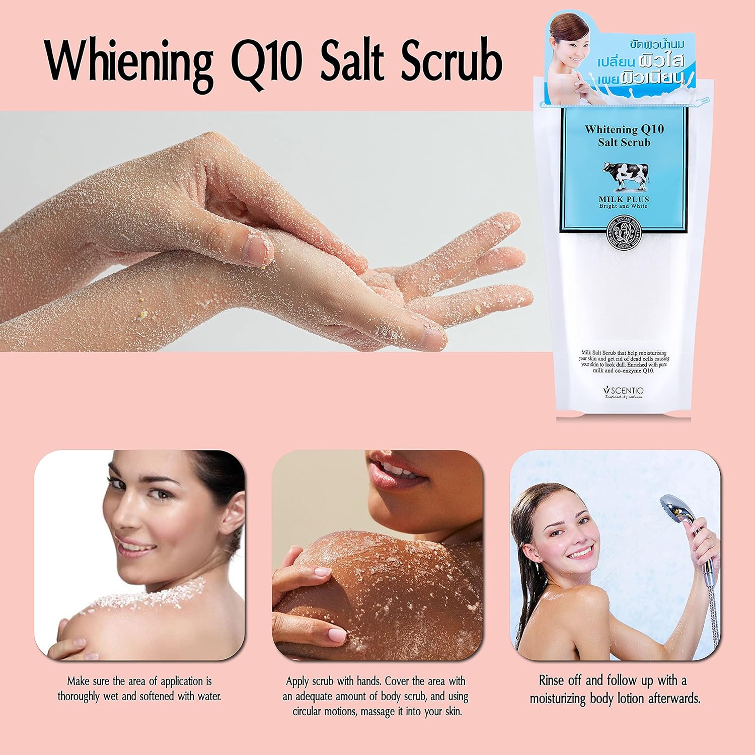 SCENTIO Milk Plus Whitening Q10 Salt Scrub 300ml سينتيو مقشر الملح بالحليب لتجديد حيوية الجسم