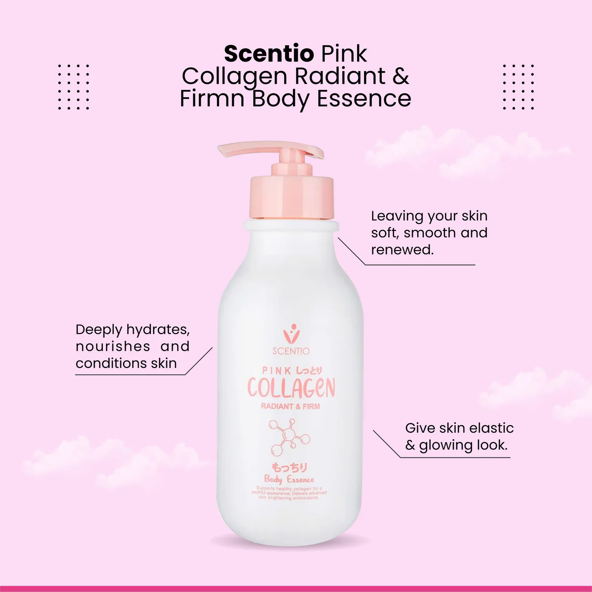 SCENTIO Pink COLLAGEN Body Essence 350ml سينتيو مرطب الجسم بالكولاجين