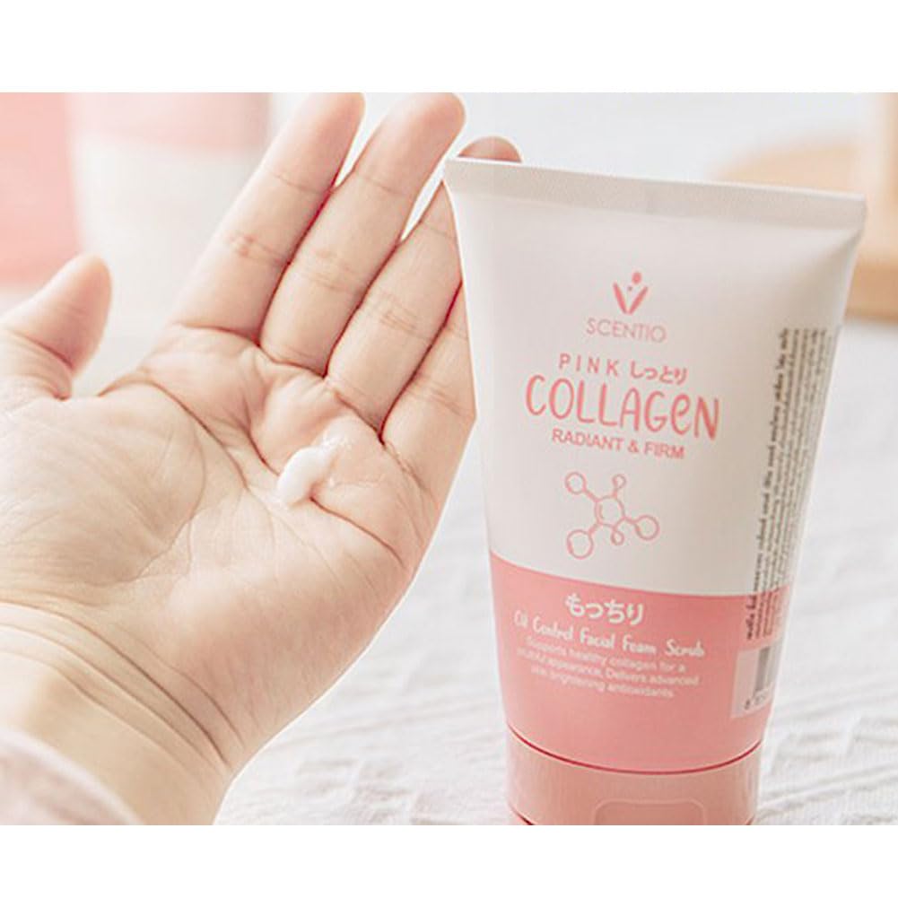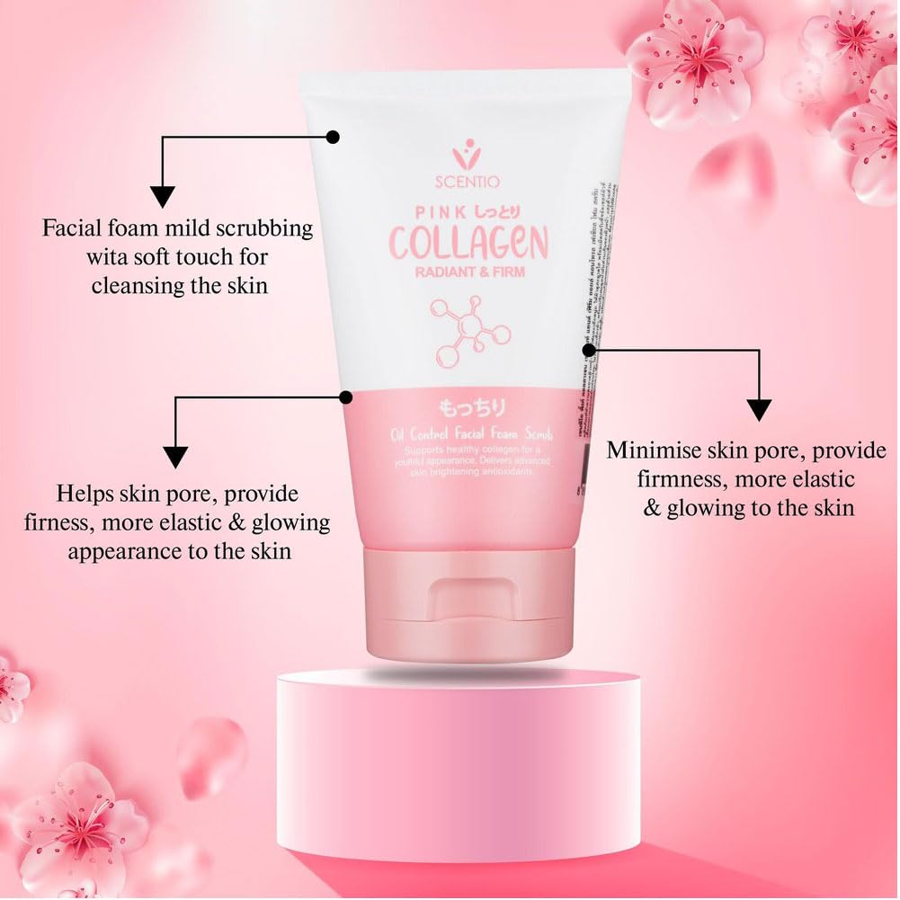 SCENTIO PINK COLLAGEN RADIANT & FIRM OIL CONTROL FACIAL FOAM SCRUB 100ml سينتيو غسول رغوي مقشر وموازن للبشرة الدهنية