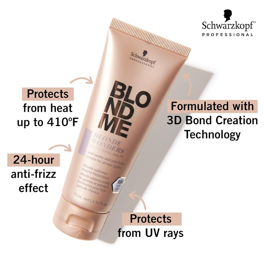 يساعد بلسم Blonde Wonders Restoring، مع تقنية 3D Bond Creation، على بناء روابط جديدة، ومنع الكسر، وتقليل التجعد، وإغلاق الأطراف المتقصفة ليترك الشعر ناعمًا ولامعًا.