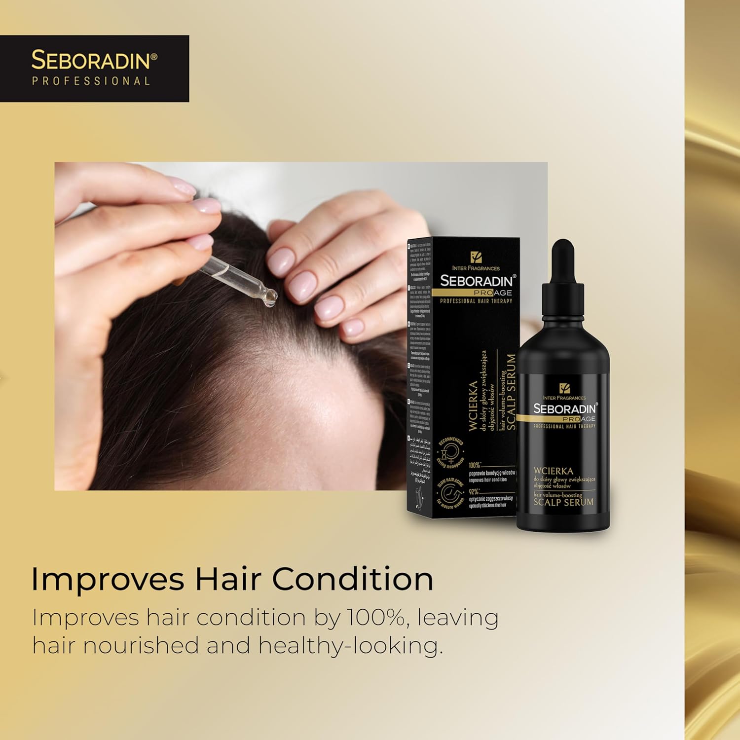 شعر وفروة رأس أكثر صحة – يُوفر الاستخدام المنتظم للسيروم ترطيبًا وتغذيةً وتقويةً للشعر. وللحصول على أفضل النتائج، يُنصح باستخدام علاج سيبورادين برو إيج الكامل.