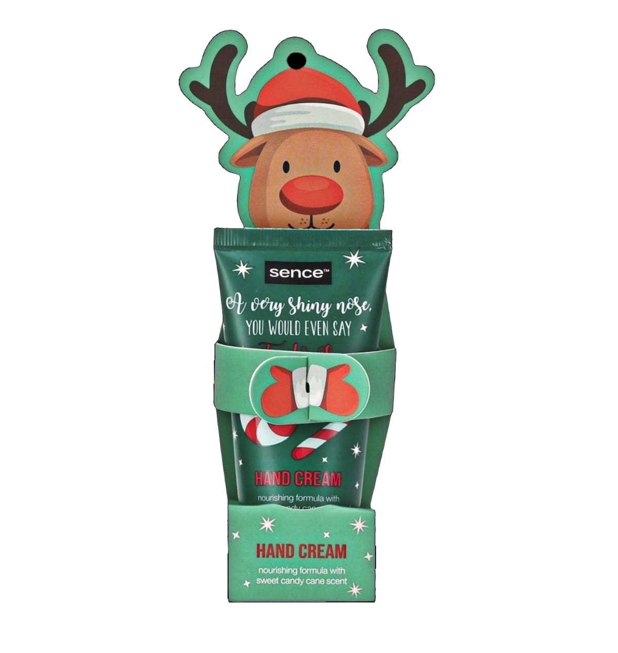 كريم يدين من Sence Beauty، بنكهة قصب الحلوى (Sweet Candy Cane scent) ضمن مجموعة “A Very Shiny Nose” الخاصة بالكريسماس.