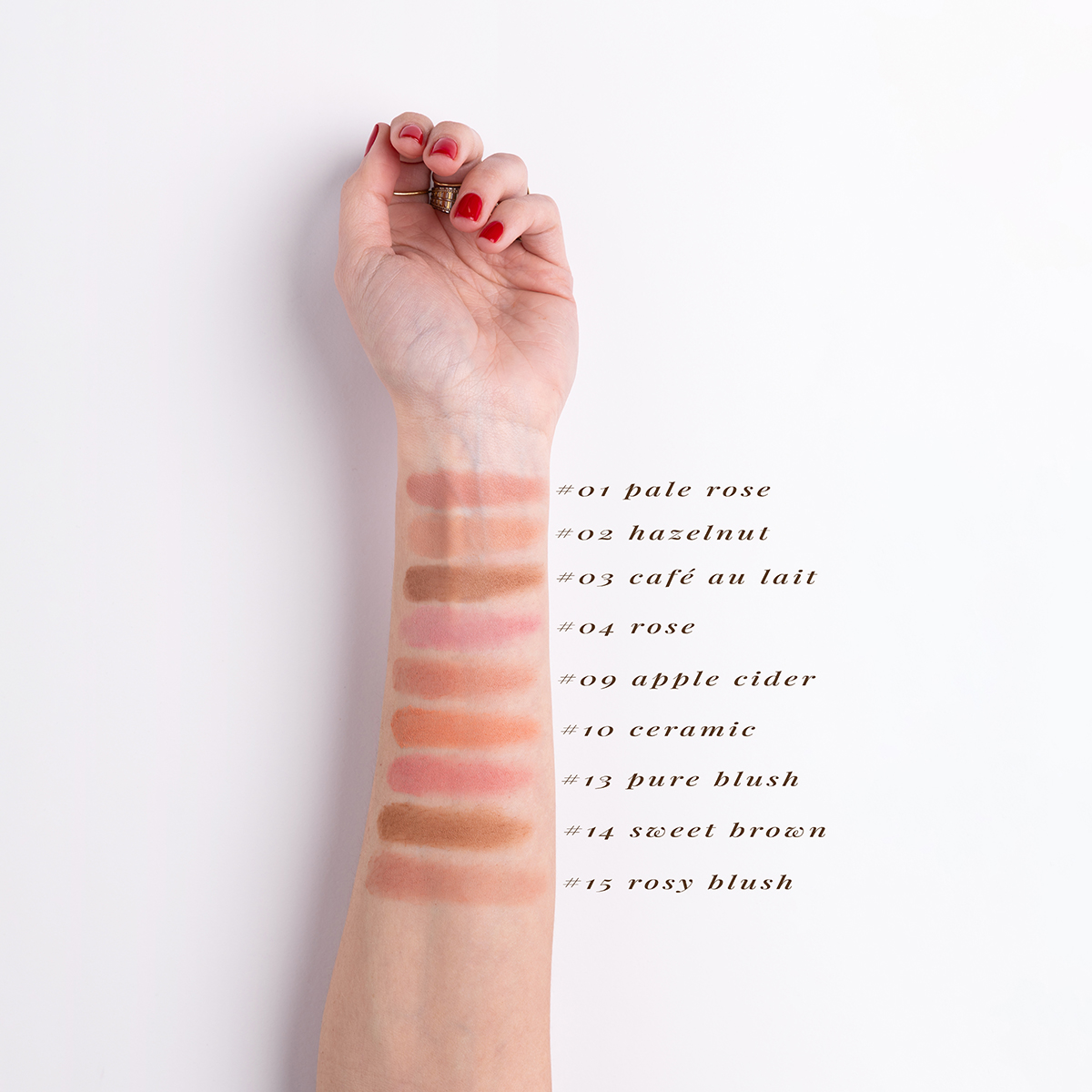 | colors | 01 PALE ROSE, 02 Hazelnut, 04 rose, 13 PURE BLUSH |