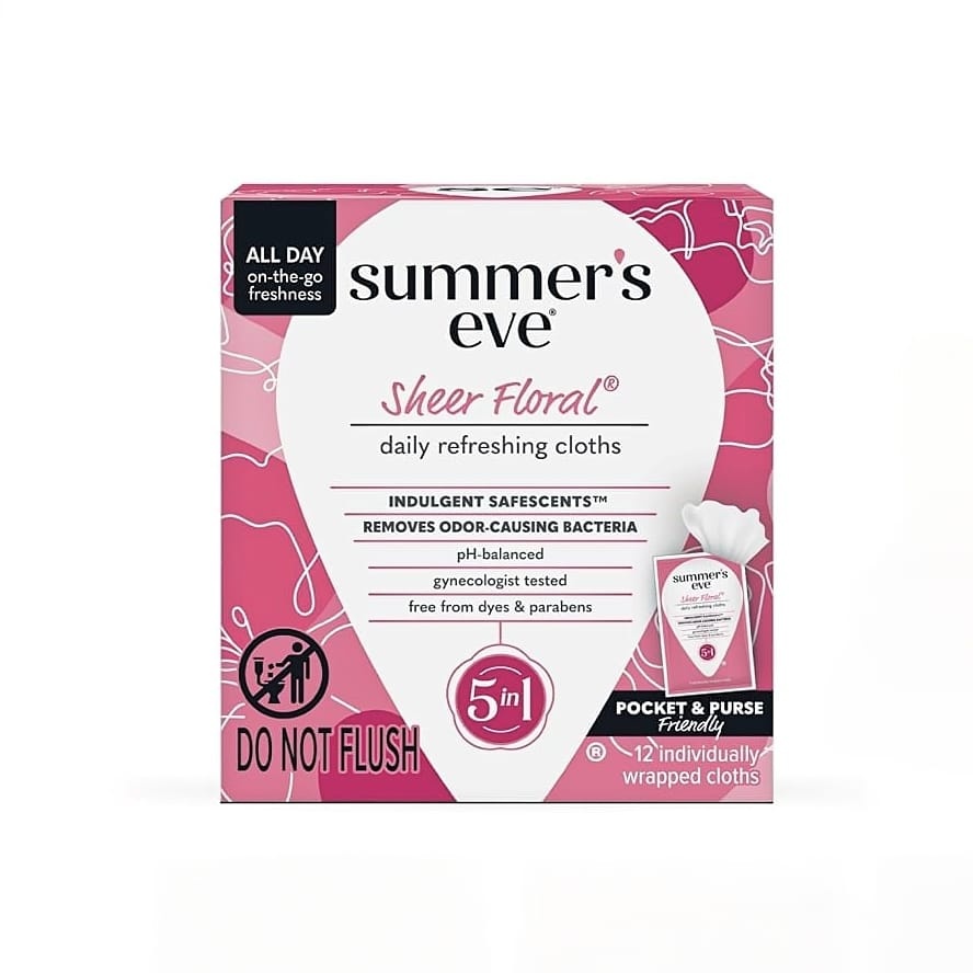 SUMMERS EVE Sheer Floral daily gentle cloths 12wipes سمر أيف مناديل صحية للمناطق الحساسه