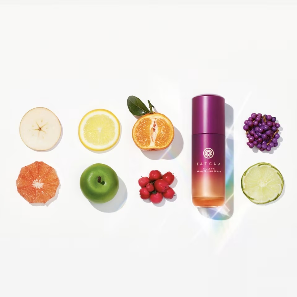 تركيبة سيروم TATCHA “Violet-C” لتفتيح البشرة، نظيفة ولطيفة على البشرة، تحتوي على نوعين من فيتامين سي، ومعززة بمستخلص التوت الياباني الغني بمضادات الأكسدة، مما يساعد على منح البشرة إشراقة وإشراقة شبابية أكثر. أحماض ألفا هيدروكسي من الفاكهة اللطيفة تُجدد البشرة الباهتة وغير المتجانسة، بينما يساعد جذر حشيشة الملاك اليابانية على تقليل ظهور البقع الداكنة، وتغير اللون، وفرط التصبغ، وندبات حب الشباب.