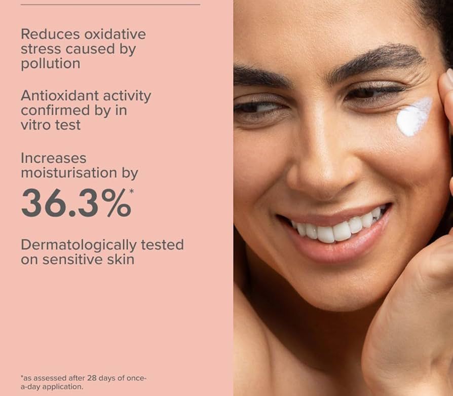 واقي شمس ومرطب للبشرة غني بالسيروم ويوفر حماية يومية واسعة الطيف من أشعة الشمس فوق البنفسجية (UVA/UVB) والتلوث والجذور الحرة حيث يحتوي على فلاتر معدنية (فيزيائية) مثل أكسيد الزنك وثاني أكسيد التيتانيوم والتي تعمل على عكس الأشعة فوق البنفسجية بدلاً من امتصاصها في الجلد كما يحتوي على حمض الهيالورونيك بثلاثة أوزان جزيئية لترطيب مكثف ومستخلص جذر الجزر الغني بفيتامين A حي يمتاز بخصائص مضادة للأكسدة وتعتبر تركيبتهِ خفيفة الوزن وسريعة الامتصاص مناسبة لجميع أنواع البشرة بما في ذلك البشرة الحساسة.