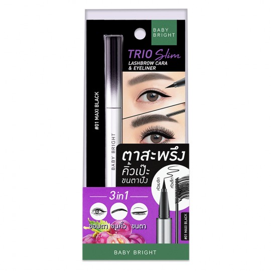 BABY BRIGHT TRIO SLIM LASHBROW CARA & EYELINER 2G+0.5ML (M) 01 MAXI BLACK بيبي برايت قلم الحواجب والرموش