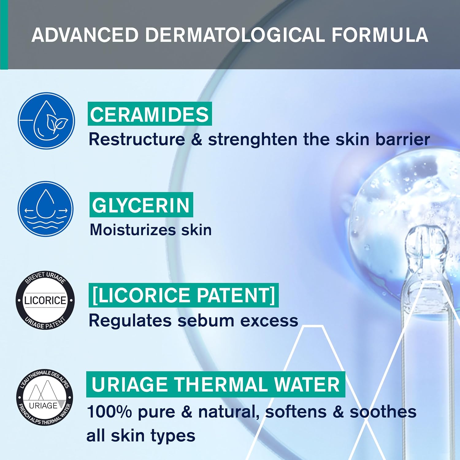 يعمل سيراستيرول-2F على إعادة بناء حاجز البشرة وتقويته، بينما تعمل مياه يورياج الحرارية، وهي مكون طبيعي بالكامل، على تهدئة البشرة وتخفيف الشعور بالانزعاج. في الوقت نفسه، يعمل TLR2 REGUL الحاصل على براءة اختراع من يورياج، بالإضافة إلى خلاصة التين الهندي، على تهدئة البشرة وتوفير راحة فورية وطويلة الأمد.
