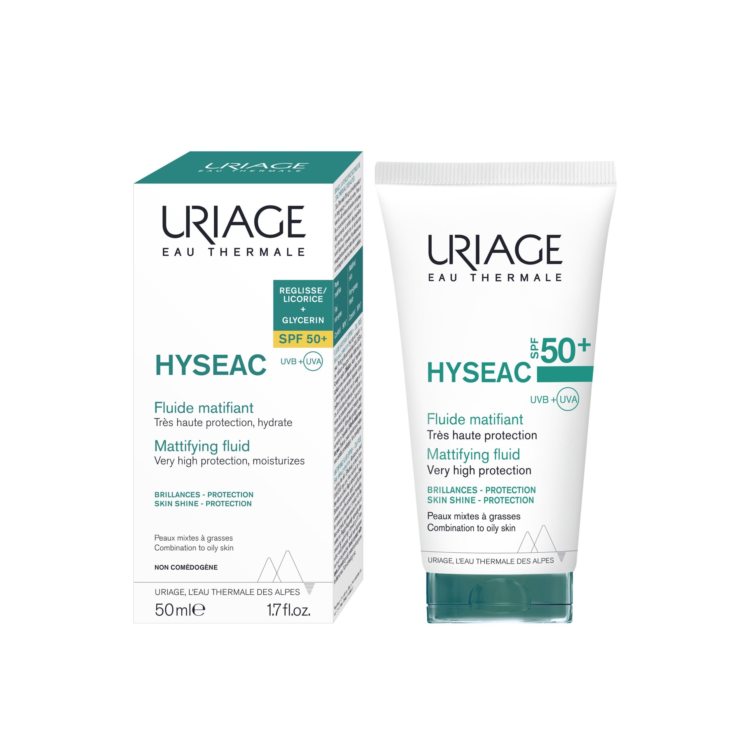 يوفر واقي الشمس Uriage Hyséac SPF50+ حماية واسعة النطاق من الأشعة فوق البنفسجية UVA وUVB بتركيبة خفيفة الوزن ذات ملمس مطفي، مصممة خصيصًا للبشرة المعرضة للشوائب. يعمل مركب الترشيح المبتكر الخالي من الأوكتوكريلين على حماية البشرة من أضرار أشعة الشمس، بينما يتحكم مستخلص عرق السوس وعوامل الإضفاء المطفي في إفراز الدهون الزائدة ويمنع اللمعان، ليحافظ على بشرة صافية ومنتعشة.
