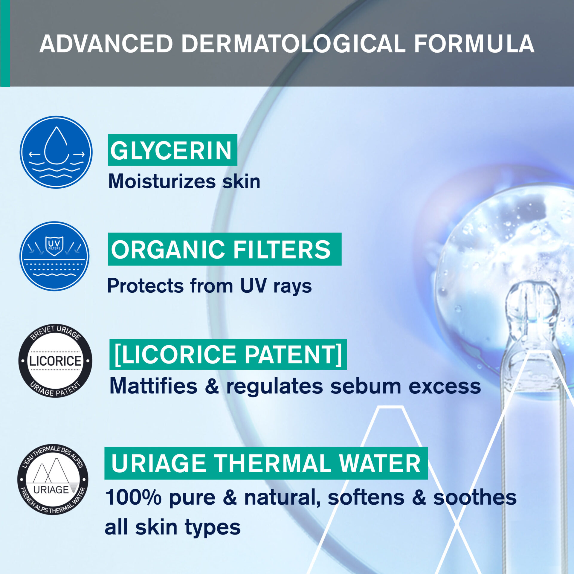 غني بمياه Uriage الحرارية، تعمل التركيبة على تهدئة البشرة وتقوية حاجزها الواقي، وتضمن راحة مثالية حتى للبشرة الحساسة والمعرضة لحب الشباب.